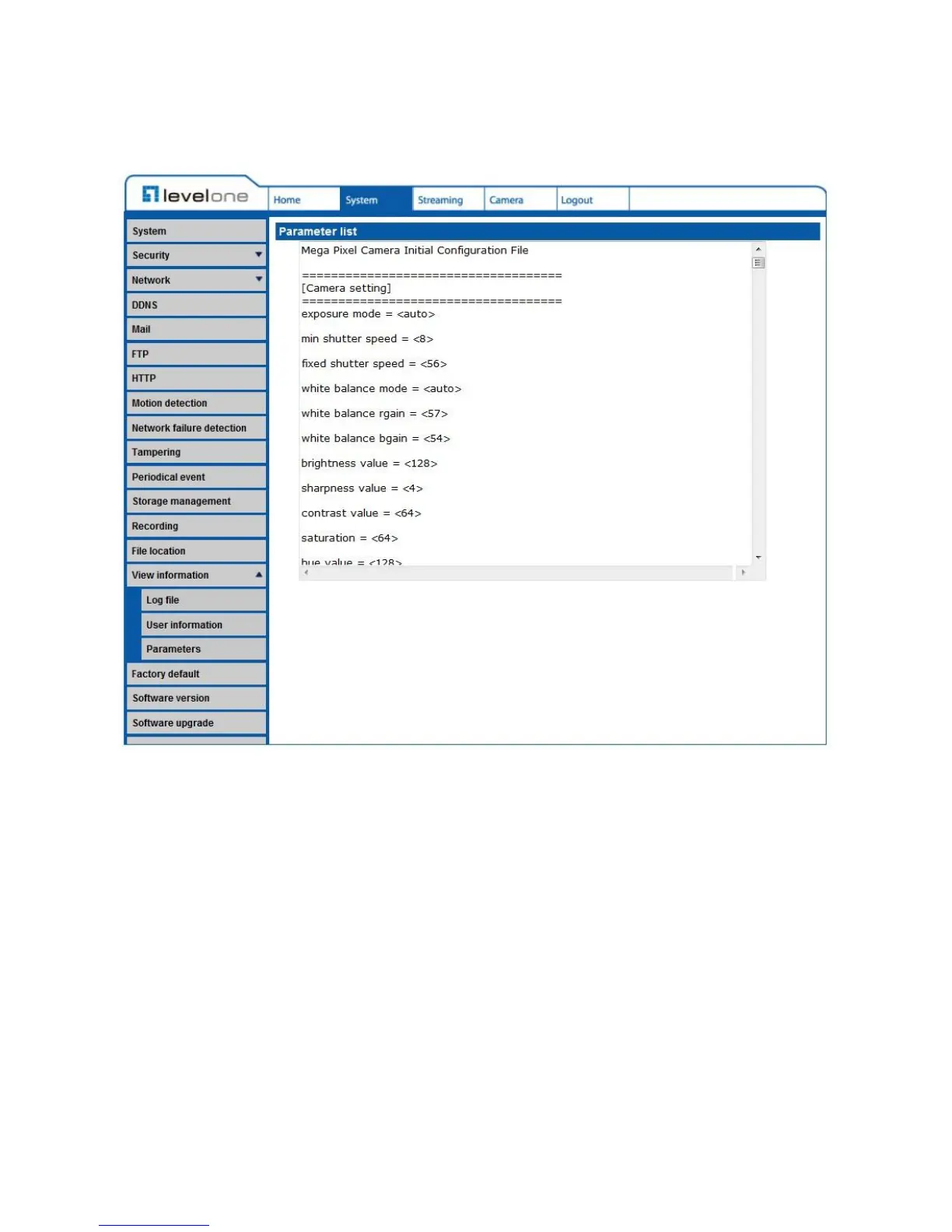 Click on this item to view the entire system’s parameter setting such as Camera Settings,