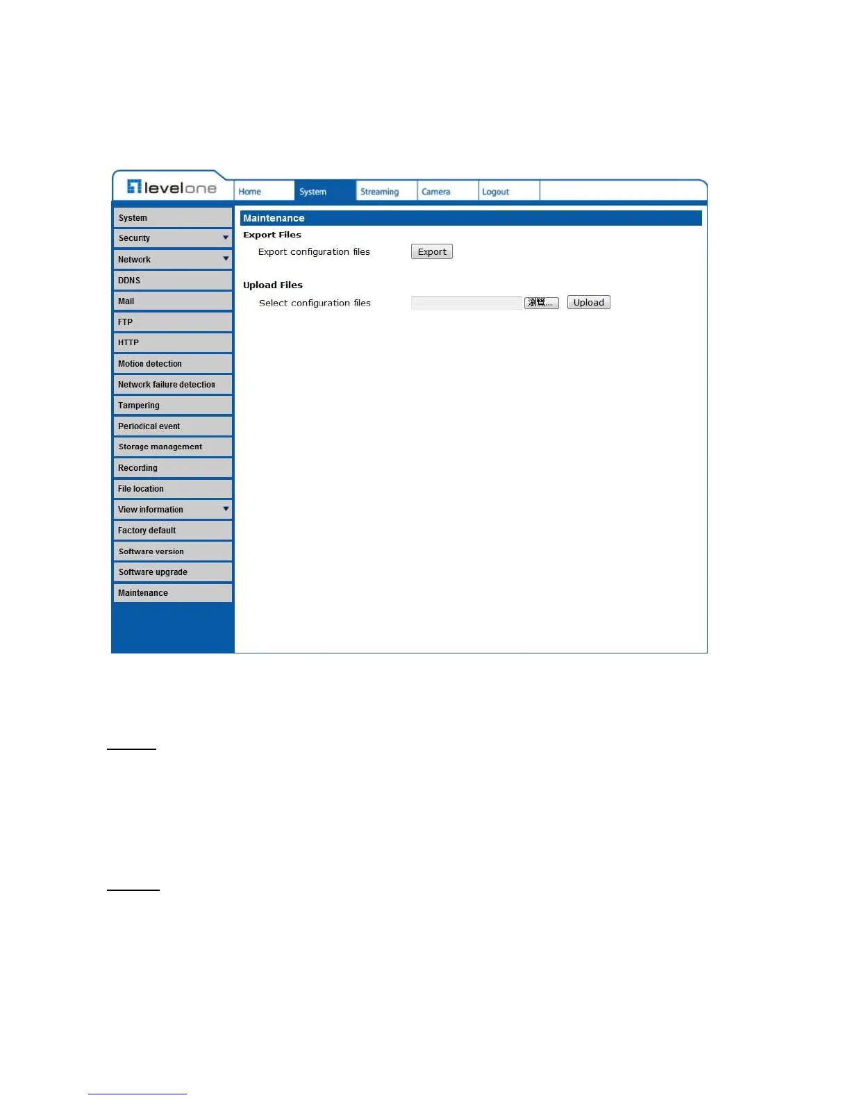 Users can save the system settings by exporting the configuration file (.bin) to a specified