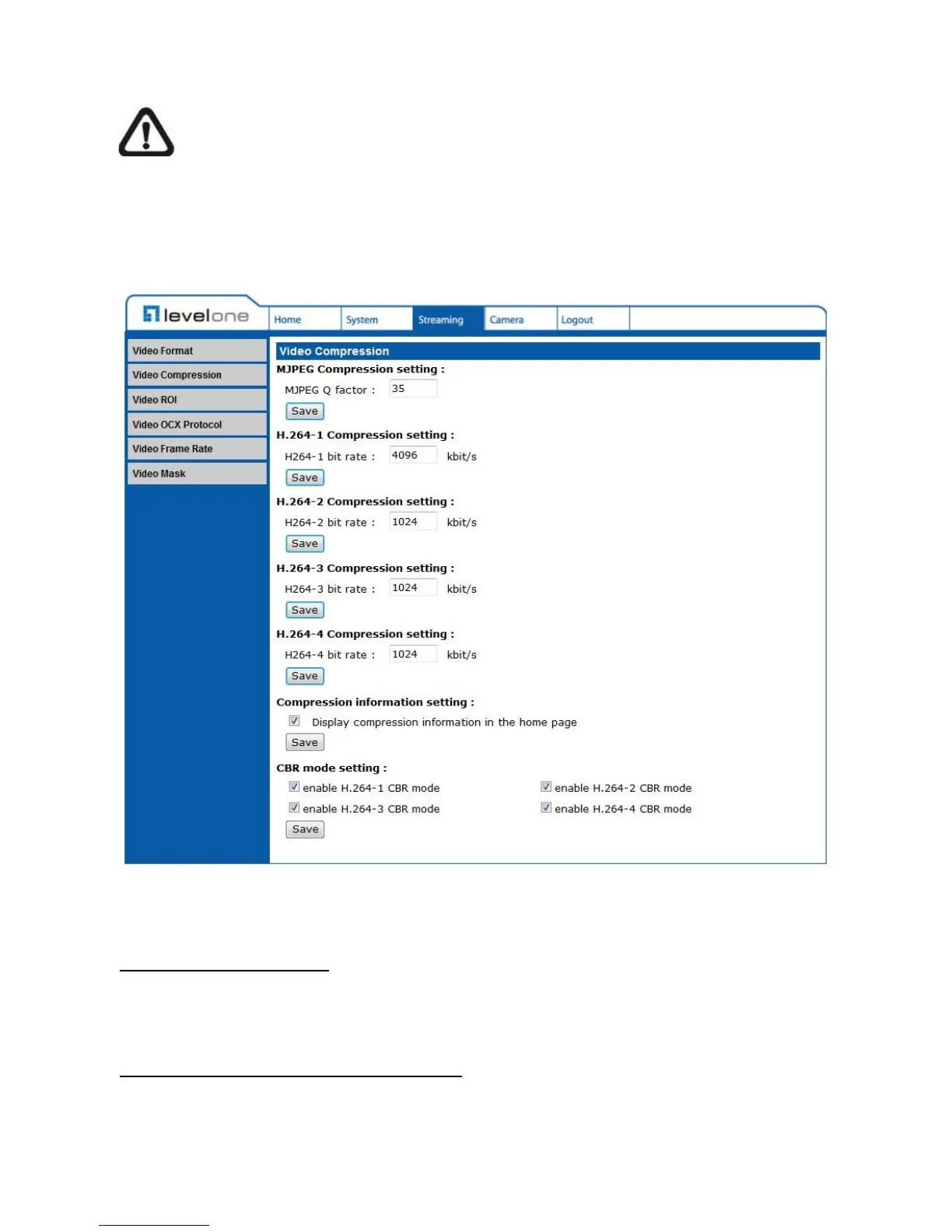 Users can select a proper MJPEG/H.264 compression mode in the video compression page