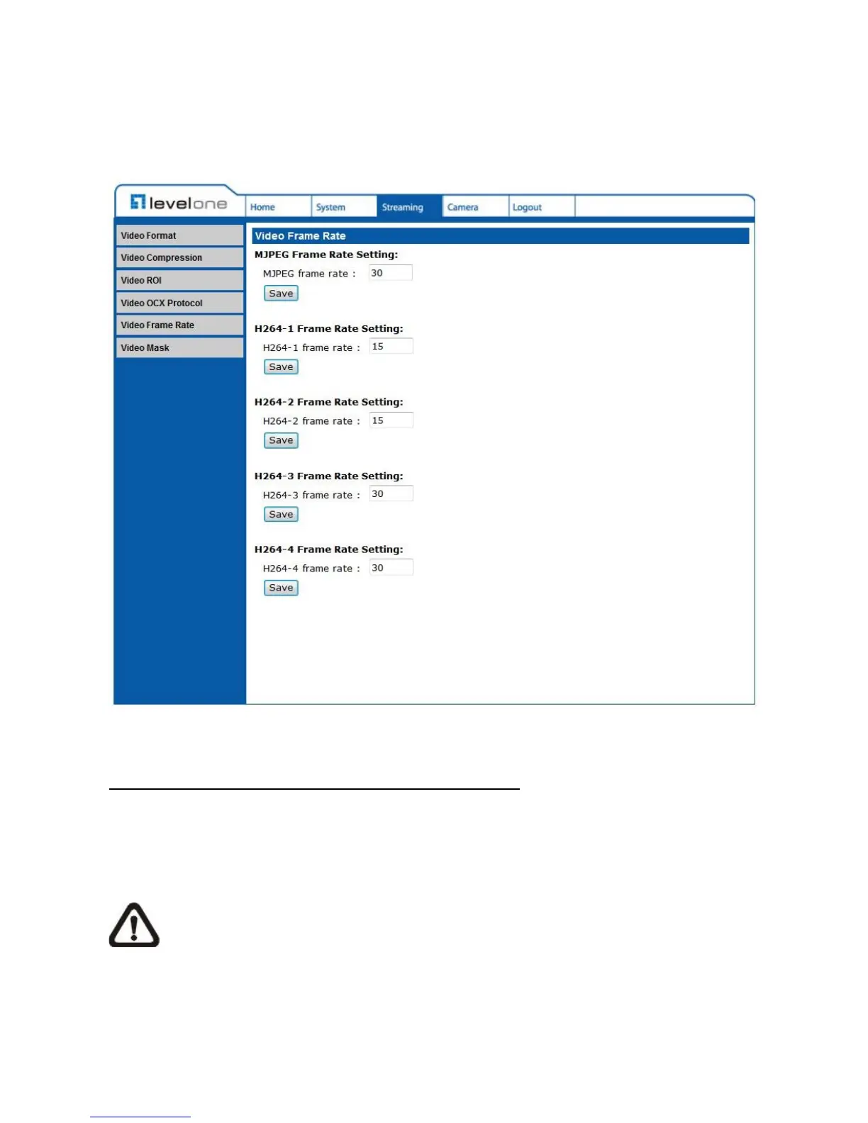 MJPEG/ H.264-1/ H.264-2/ H.264-3/ H.264-4 Frame Rate