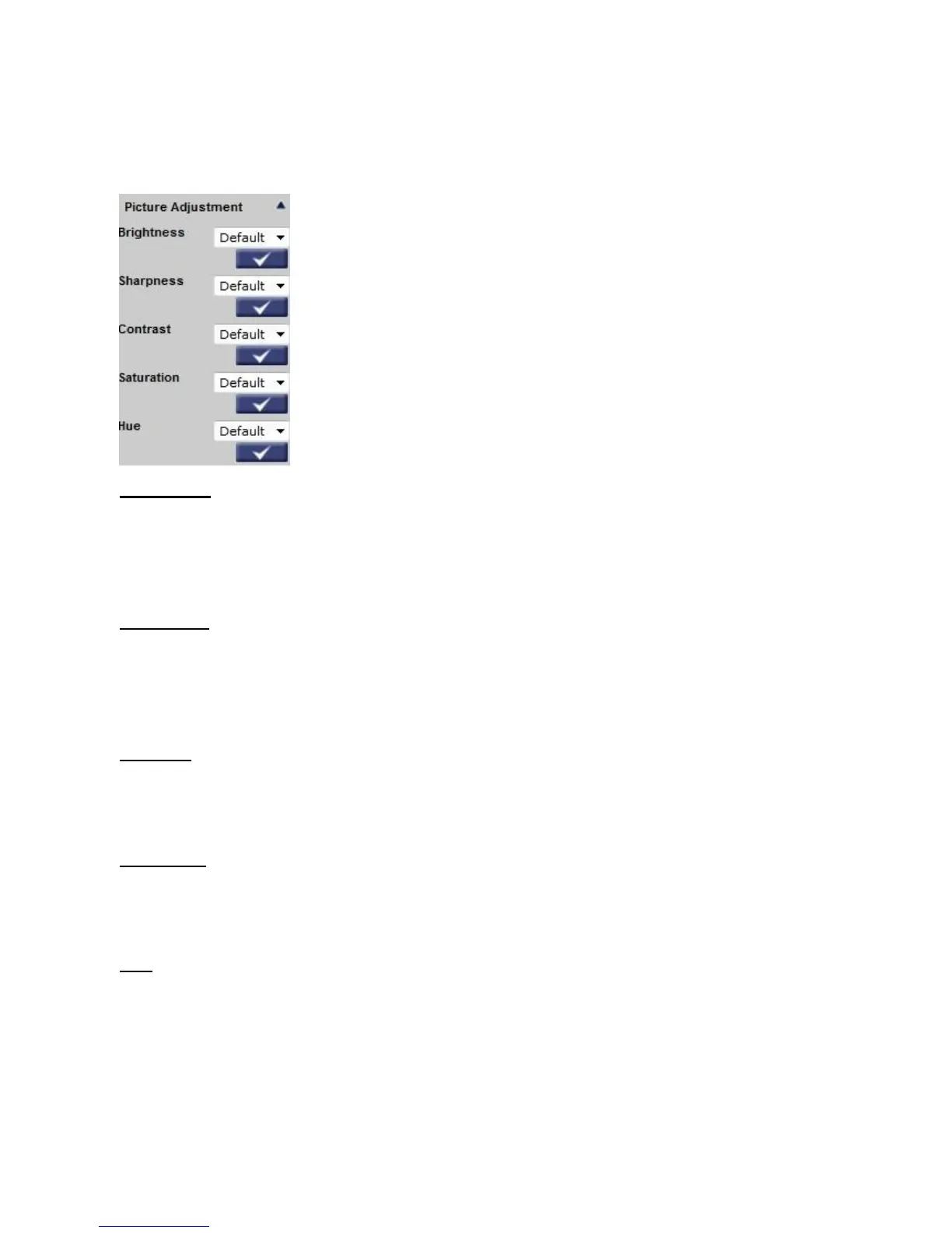 Camera image saturation level is adjustable; please select ranging from -6 to +19. Click on <