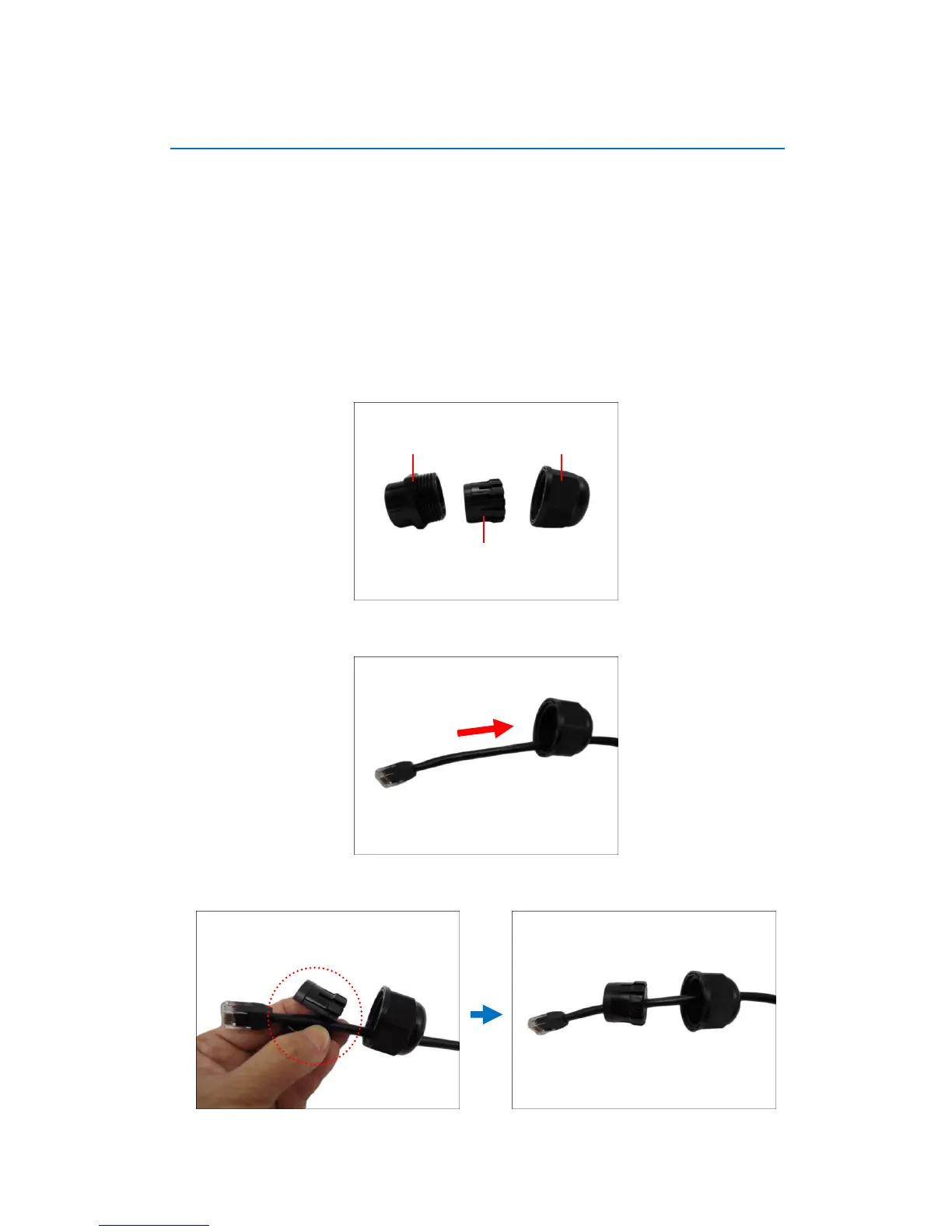 3. Insert the sealing rubber and claw through the Ethernet cable.