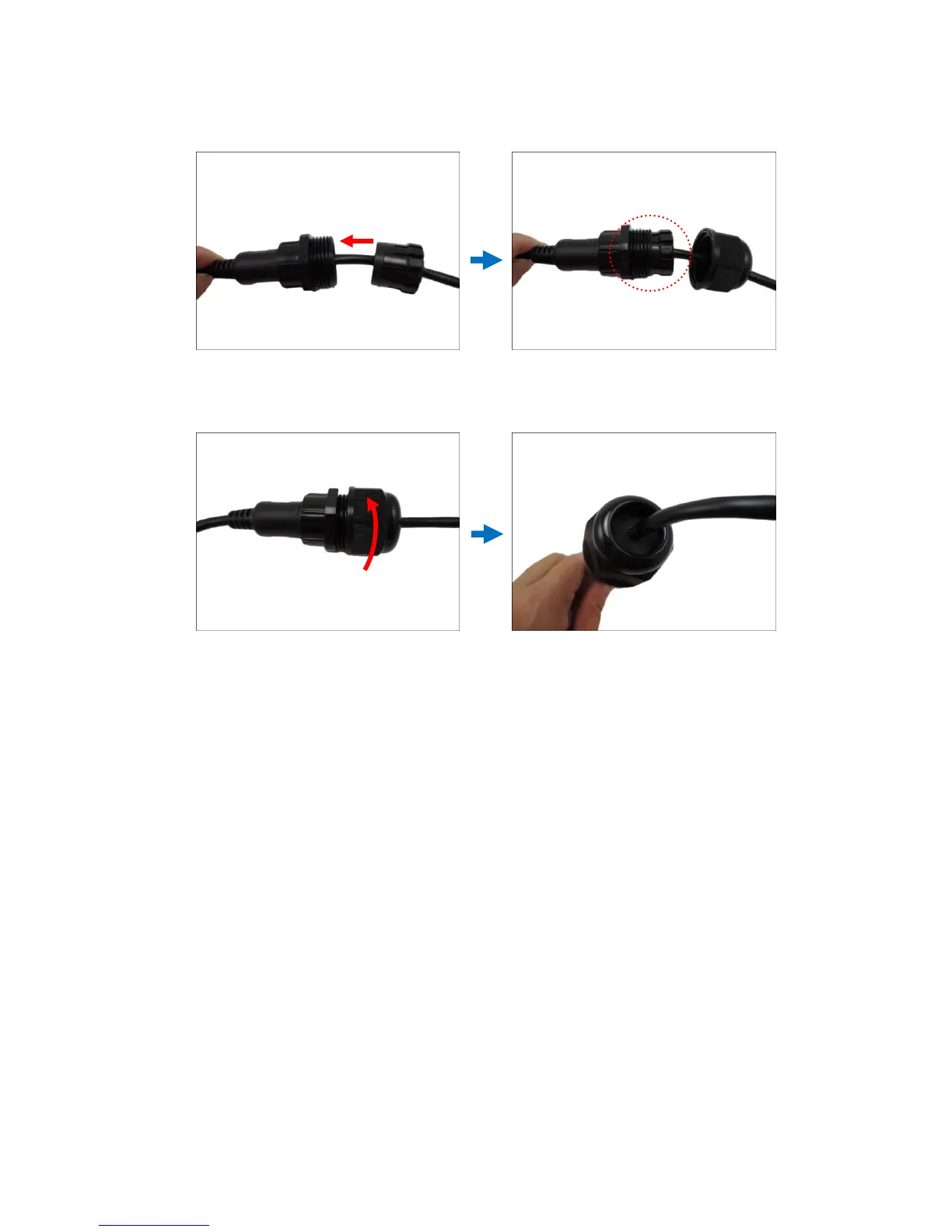8. Attach the clamping nut to the cable gland body. Make sure the clamping nut is tightly