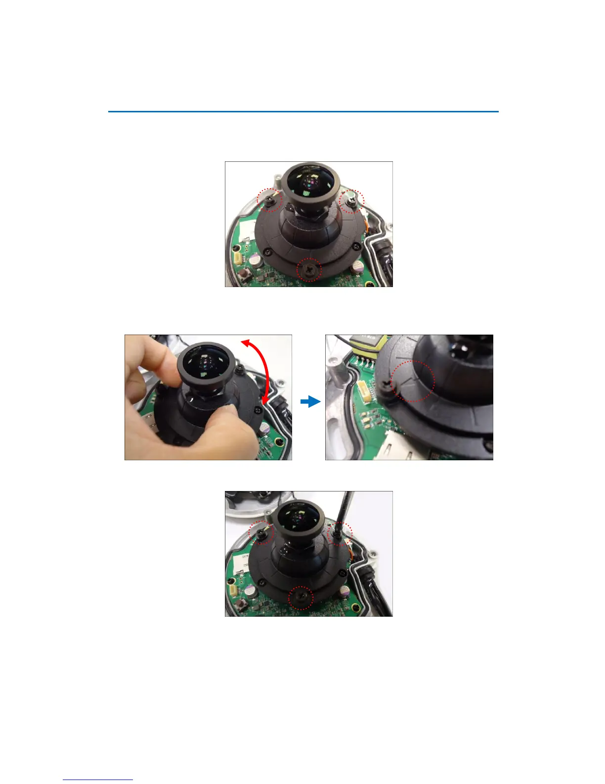 4. Once done, tighten the three (3) screws to fix the lens position.