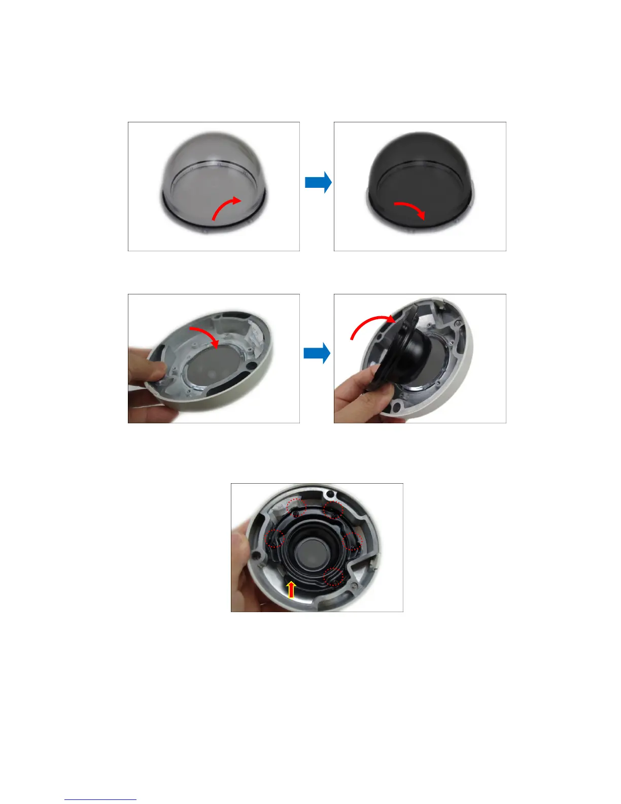 4. Remove the black rubber from the transparent dome cover and place the black rubber to the
