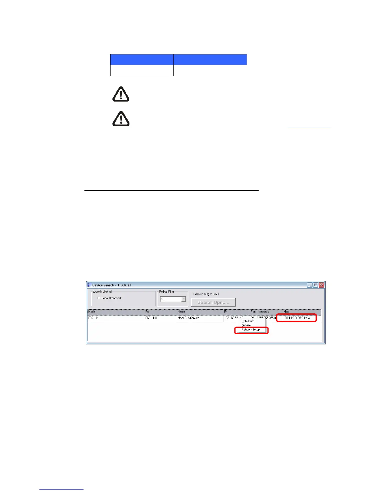 “Network Setup.” Meanwhile, record the IP Camera’s MAC address, for