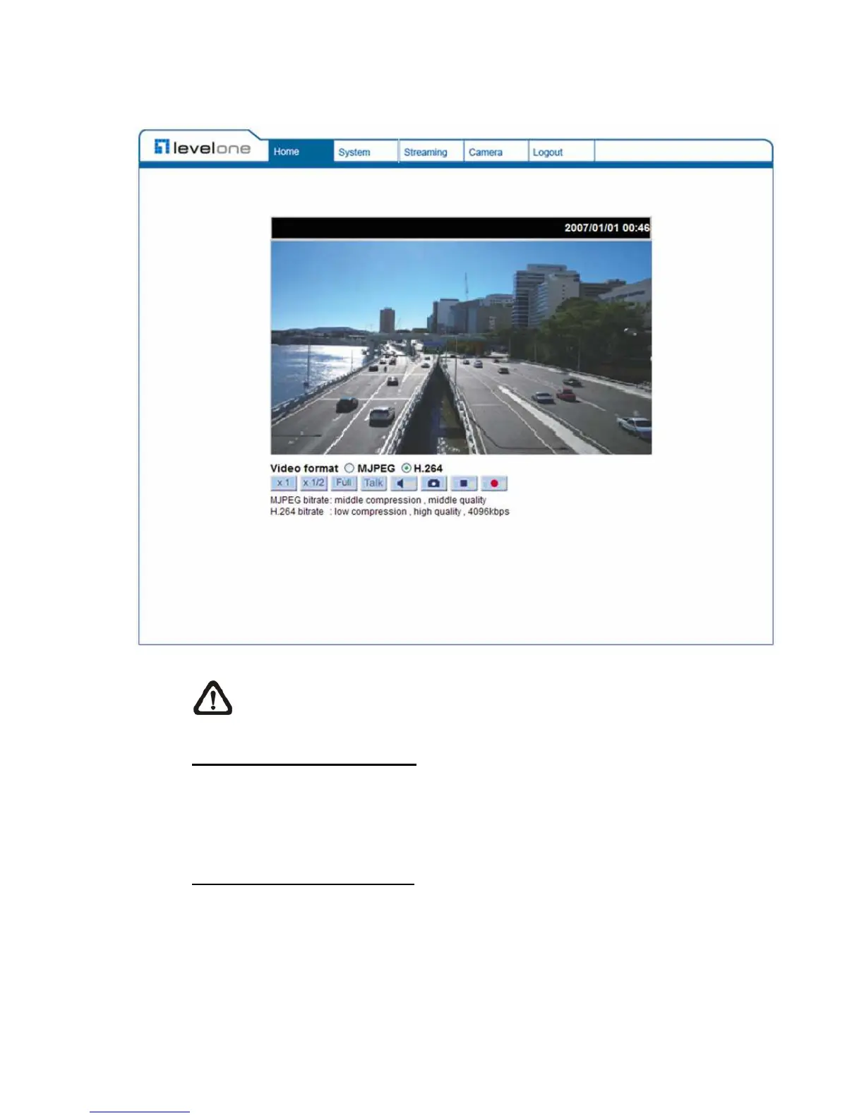Once login to the IP Camera, users will see the Home page as shown below: