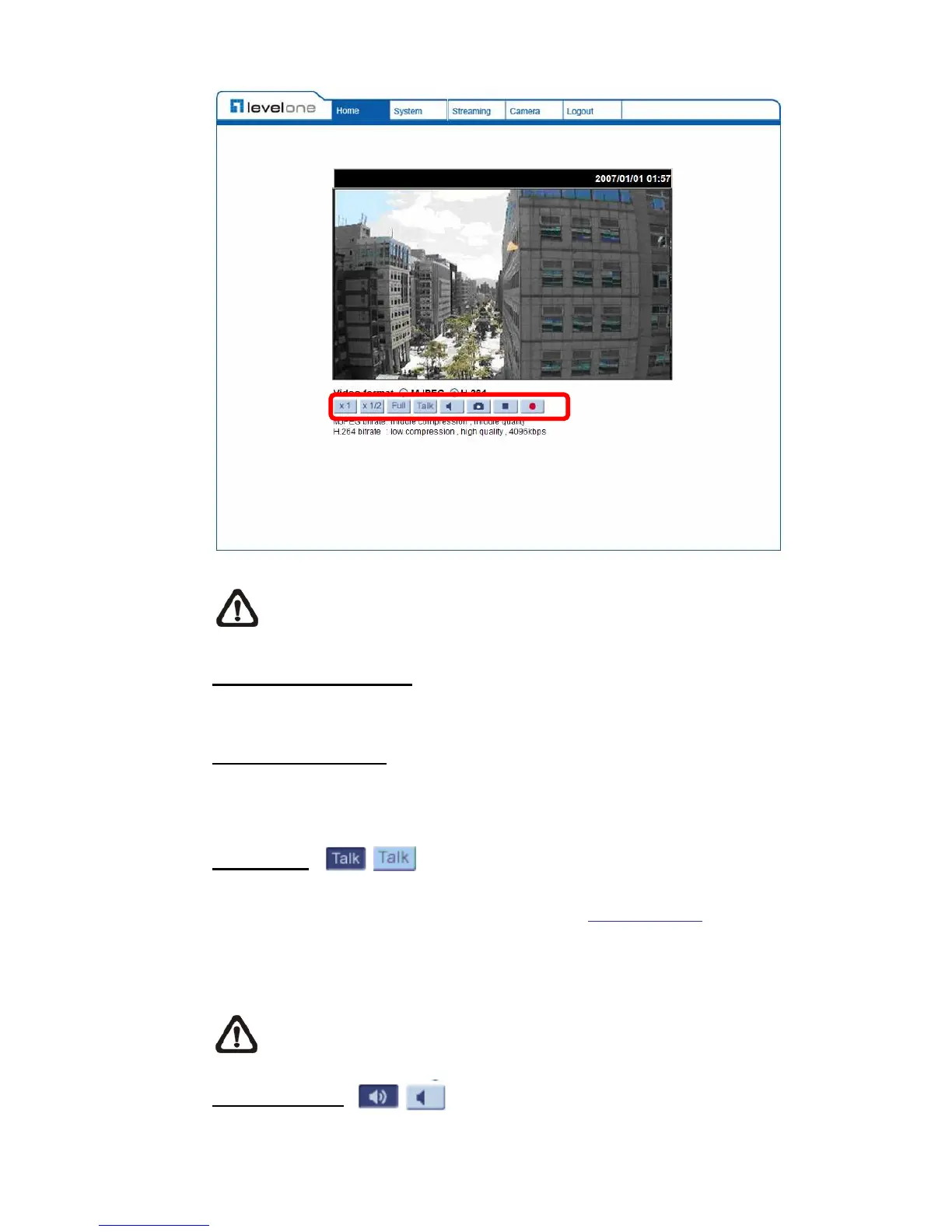 Talk function allows the local site to talk to the remote site. Click on the button to