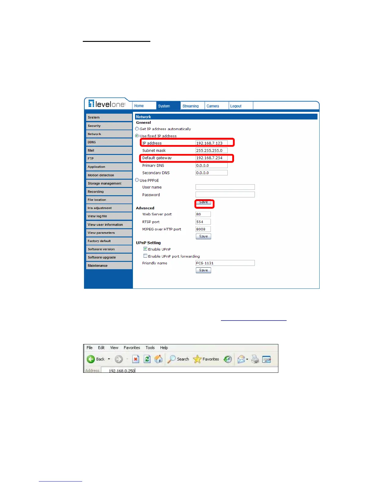 change the setting, ex. 192.168.7.254. Press “Save” to confirm the new setting.