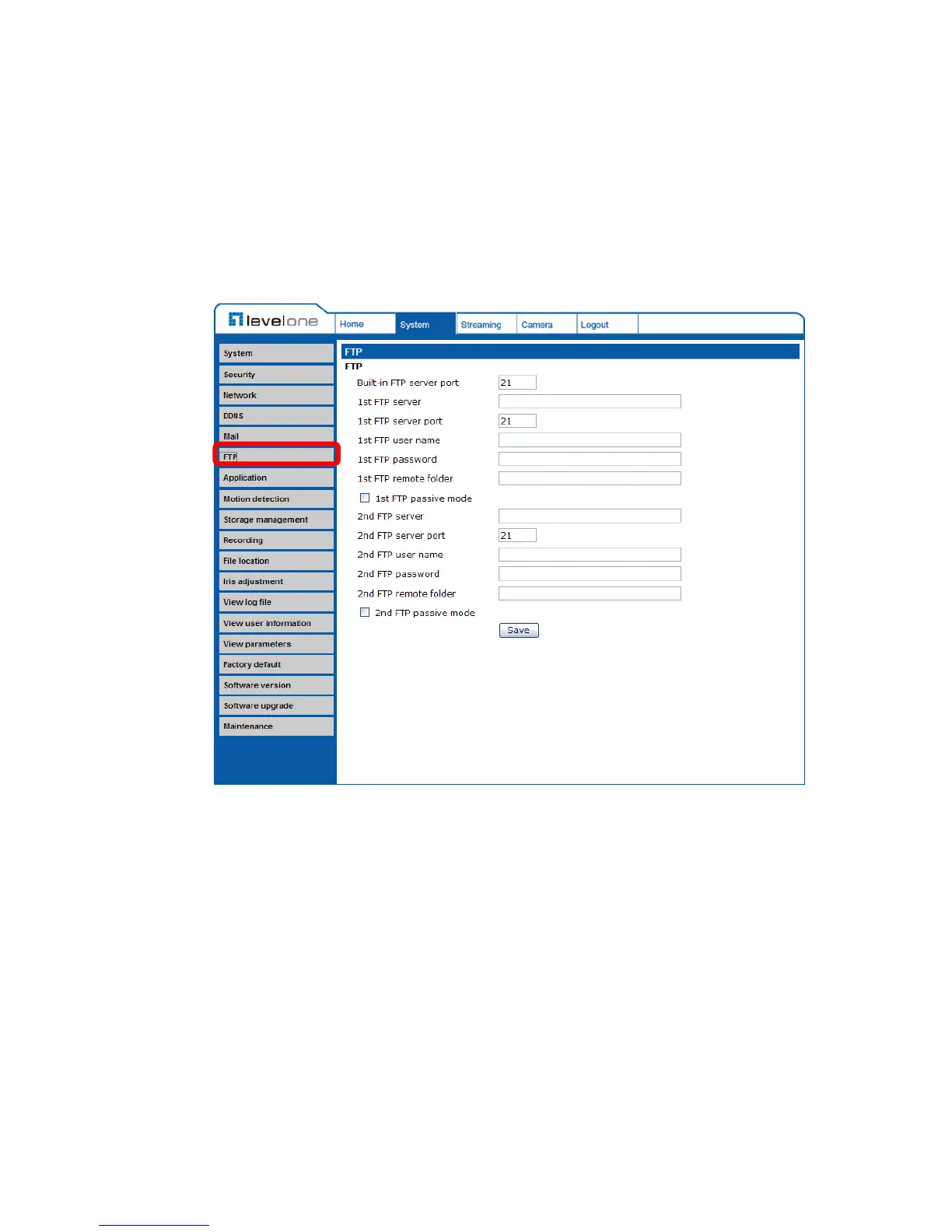 to up to two FTP sites. The FTP setting page is shown below. Enter the FTP