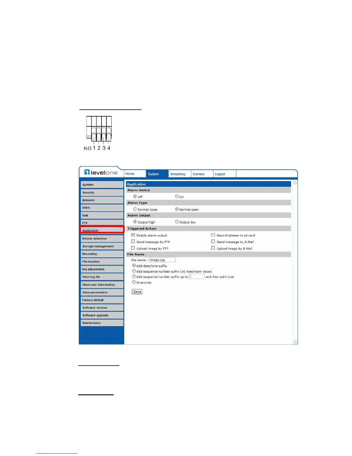 The IP Camera (Box Camera and Vandal Proof Dome) equips one alarm input