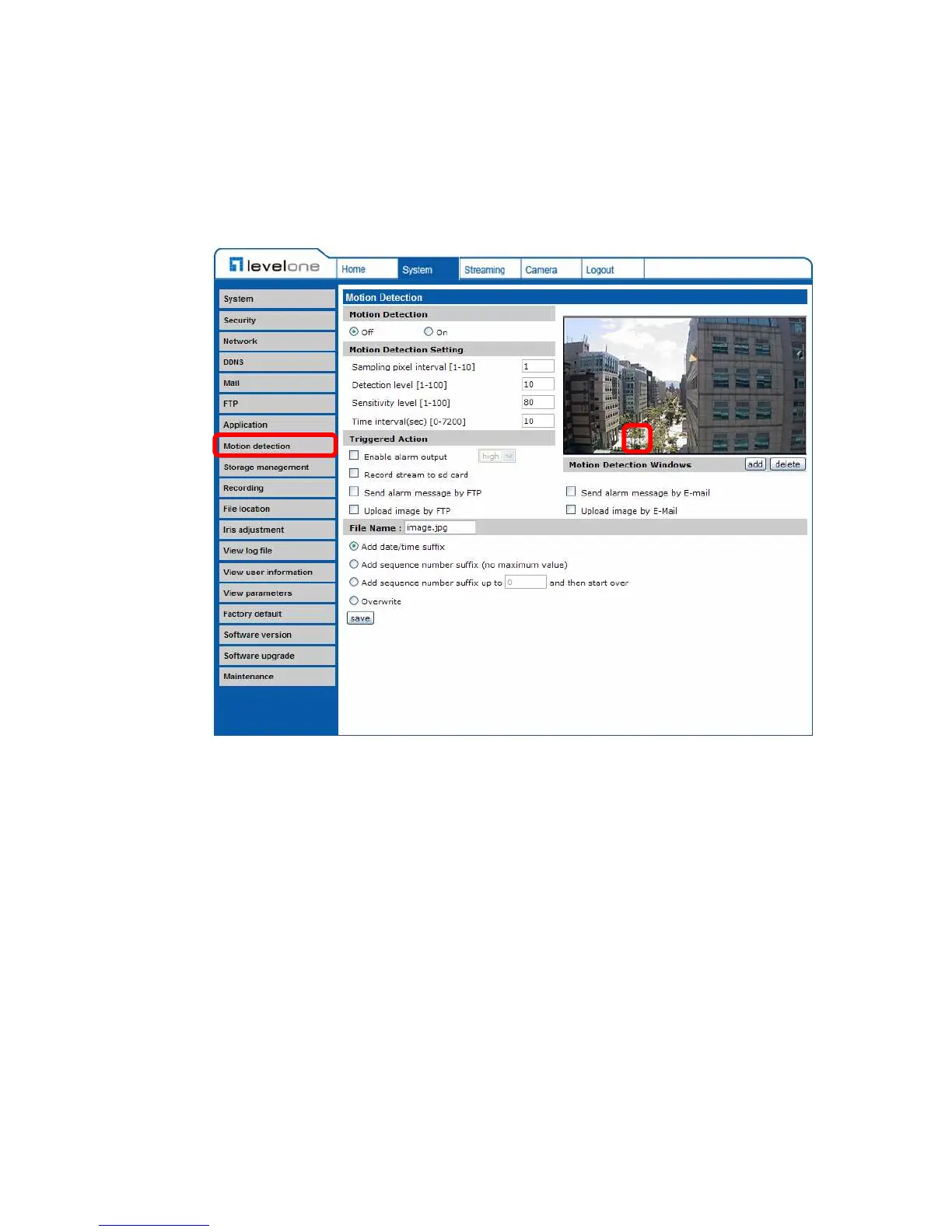 Up 10 Motion Detection Windows can be set. Press the “add” button under the
