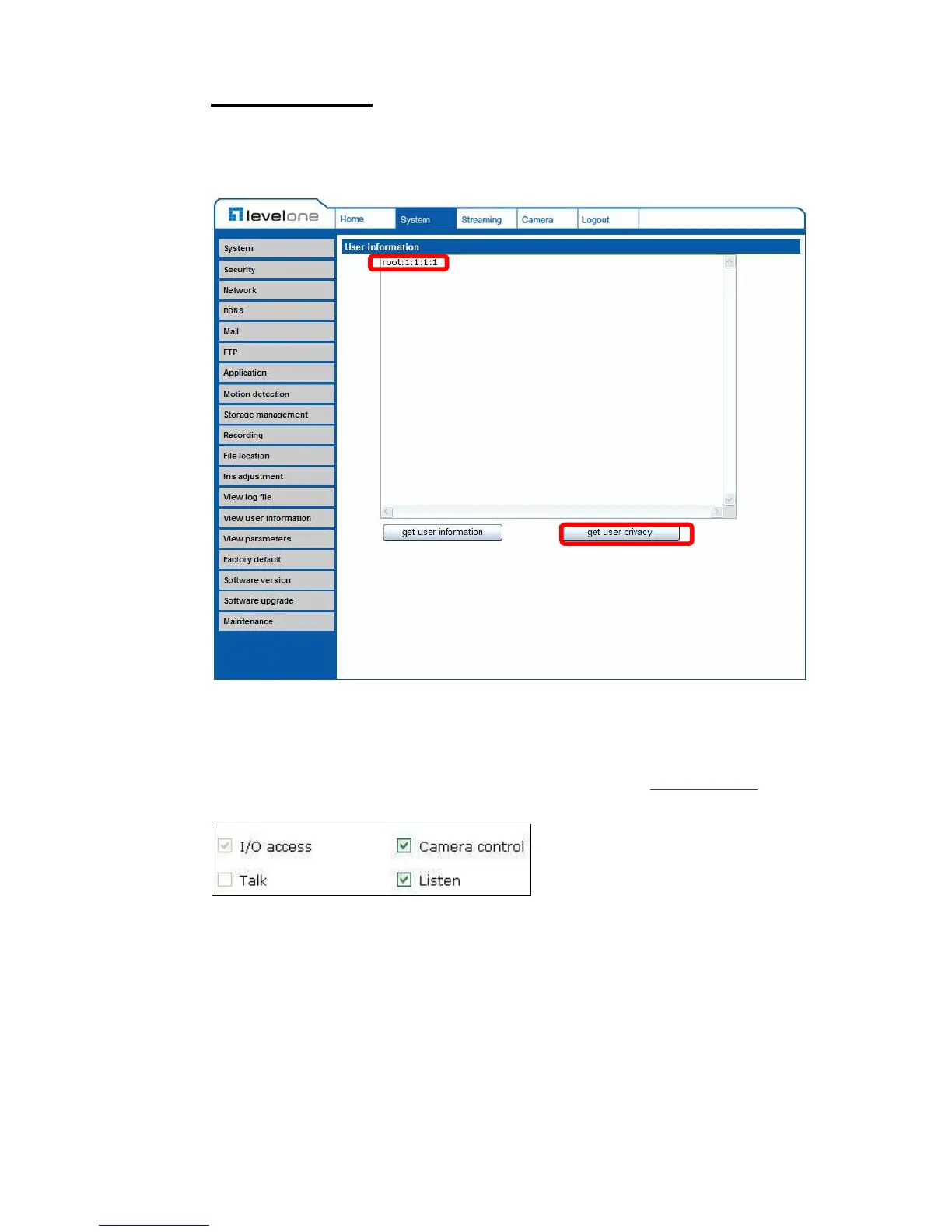 1:1:0:1= I/O access : Camera control : Talk : Listen (see 4.3.2 Security)