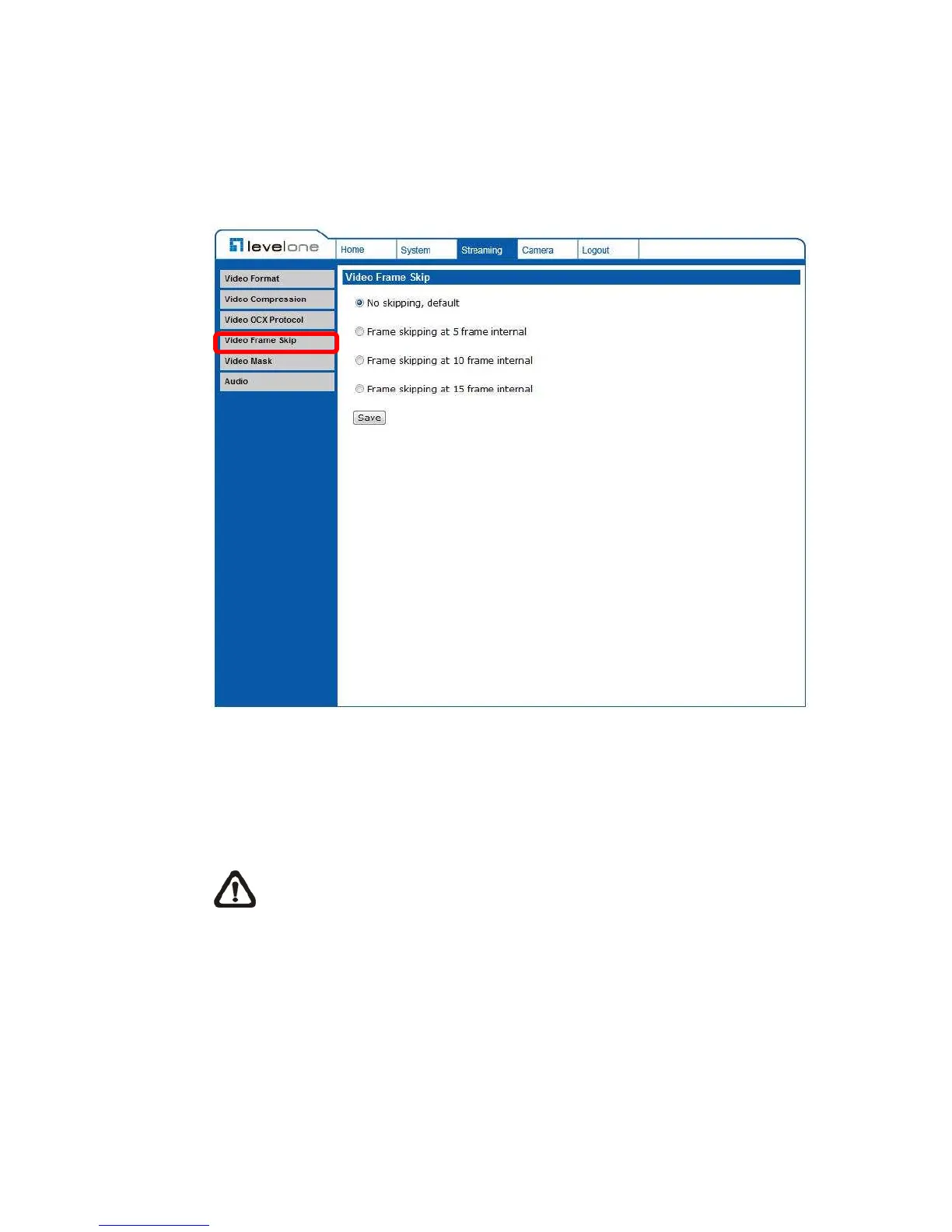Video frame skipping is for saving bandwidth if necessary. The setting page is