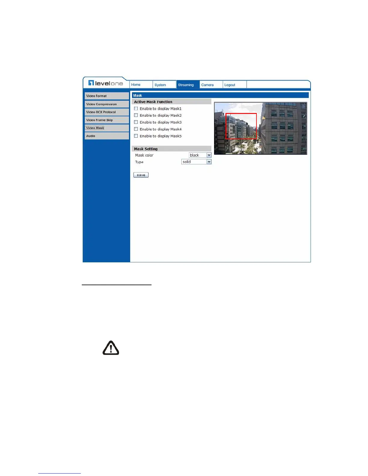 Check a Video Mask checkbox, and a red frame will come out in the Live