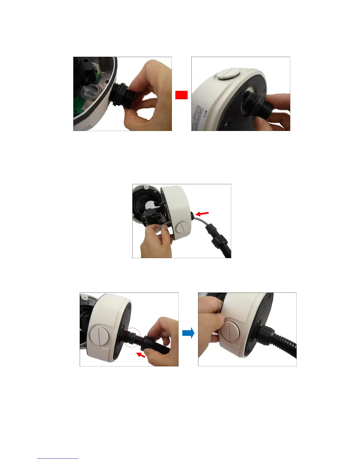 6. Screw the conduit gland body to the conduit hole of the camera.