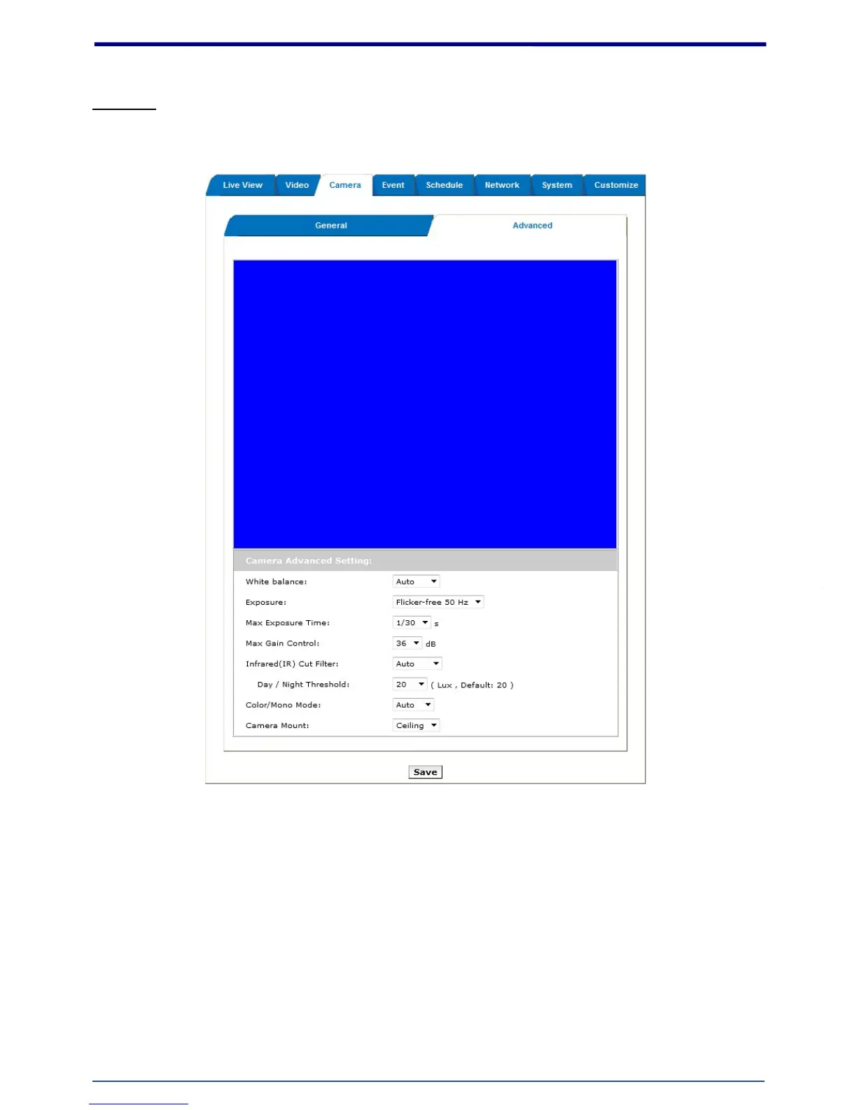 Exposure: Anti-flicker setting for image sensor to fit the frequency of light (power) source. For instance,