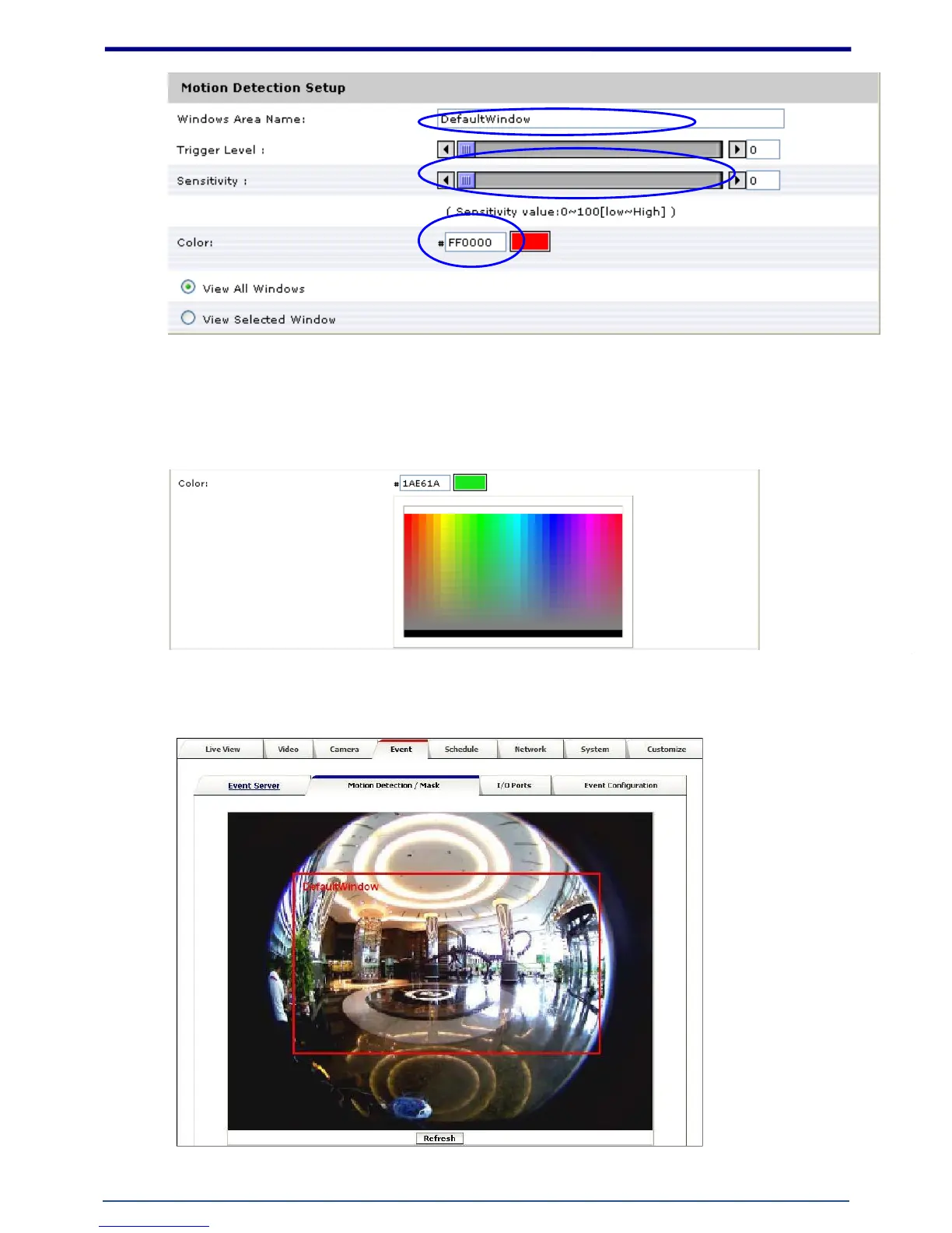 4. Select color for detection window.