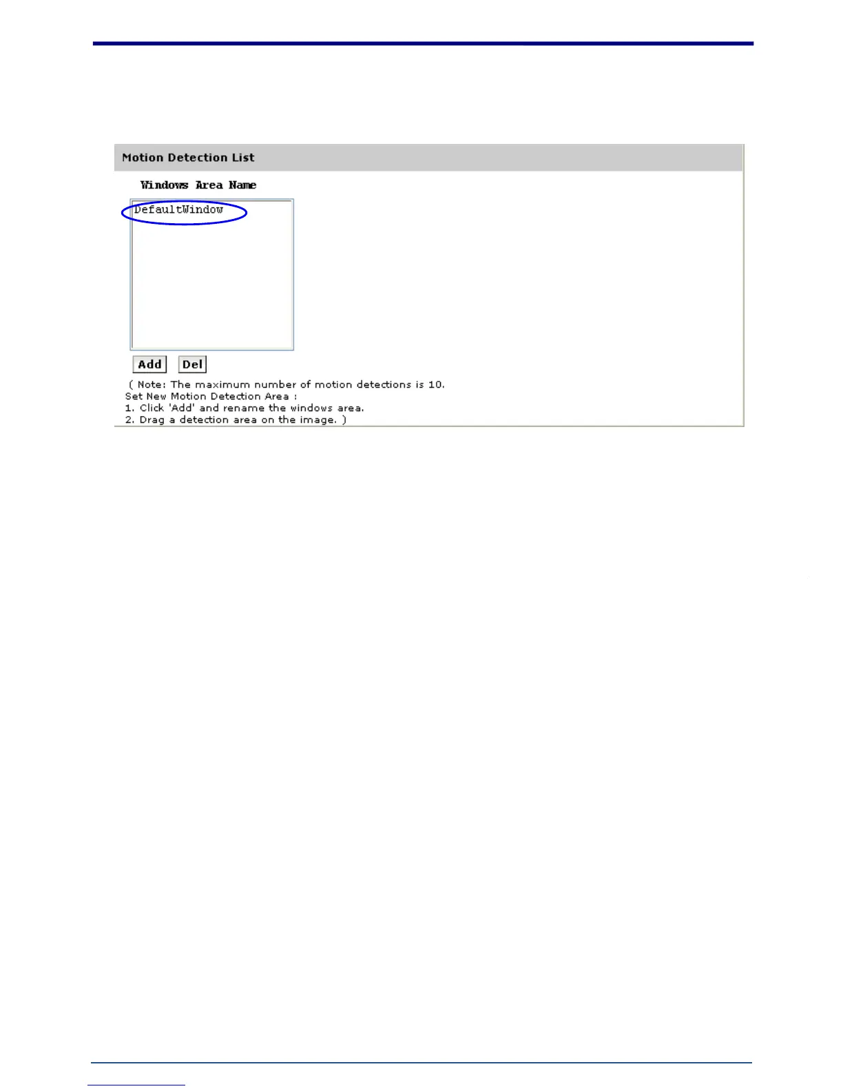 Configured detection window will be displayed in motion detection list. (Circled in blue)