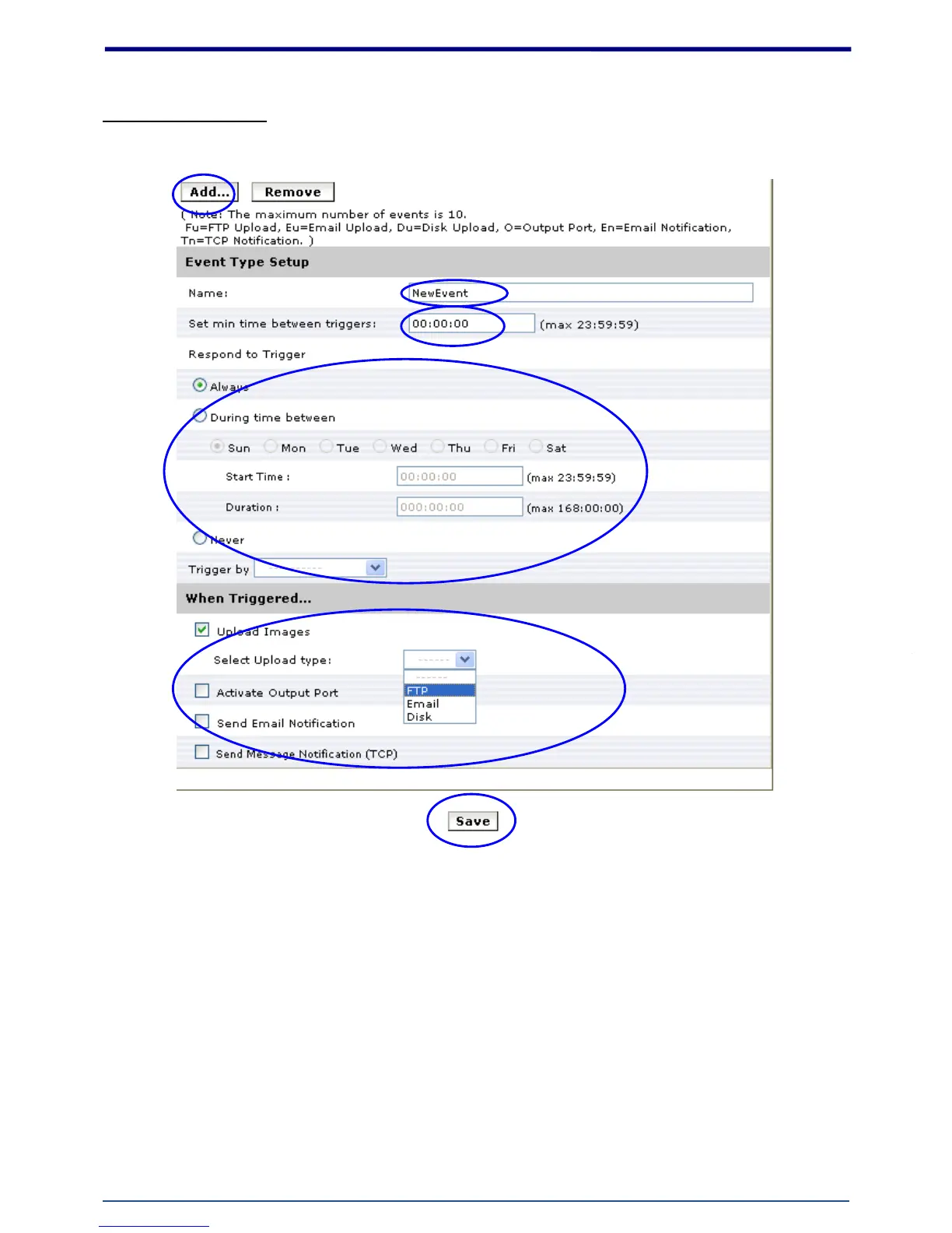 1. To add an event trigger, click on [Add] and setup panel will be expanded.