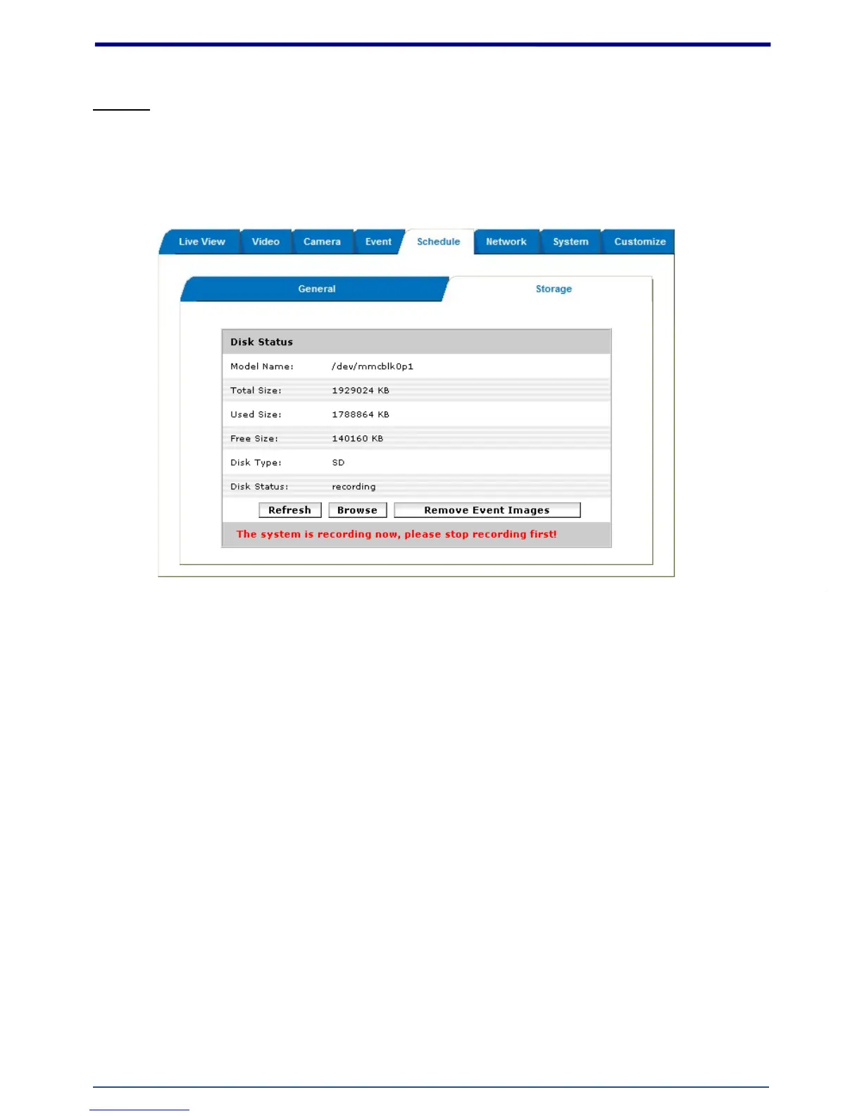 Display the storage information, includes disk size info, type and status. The warning message shows