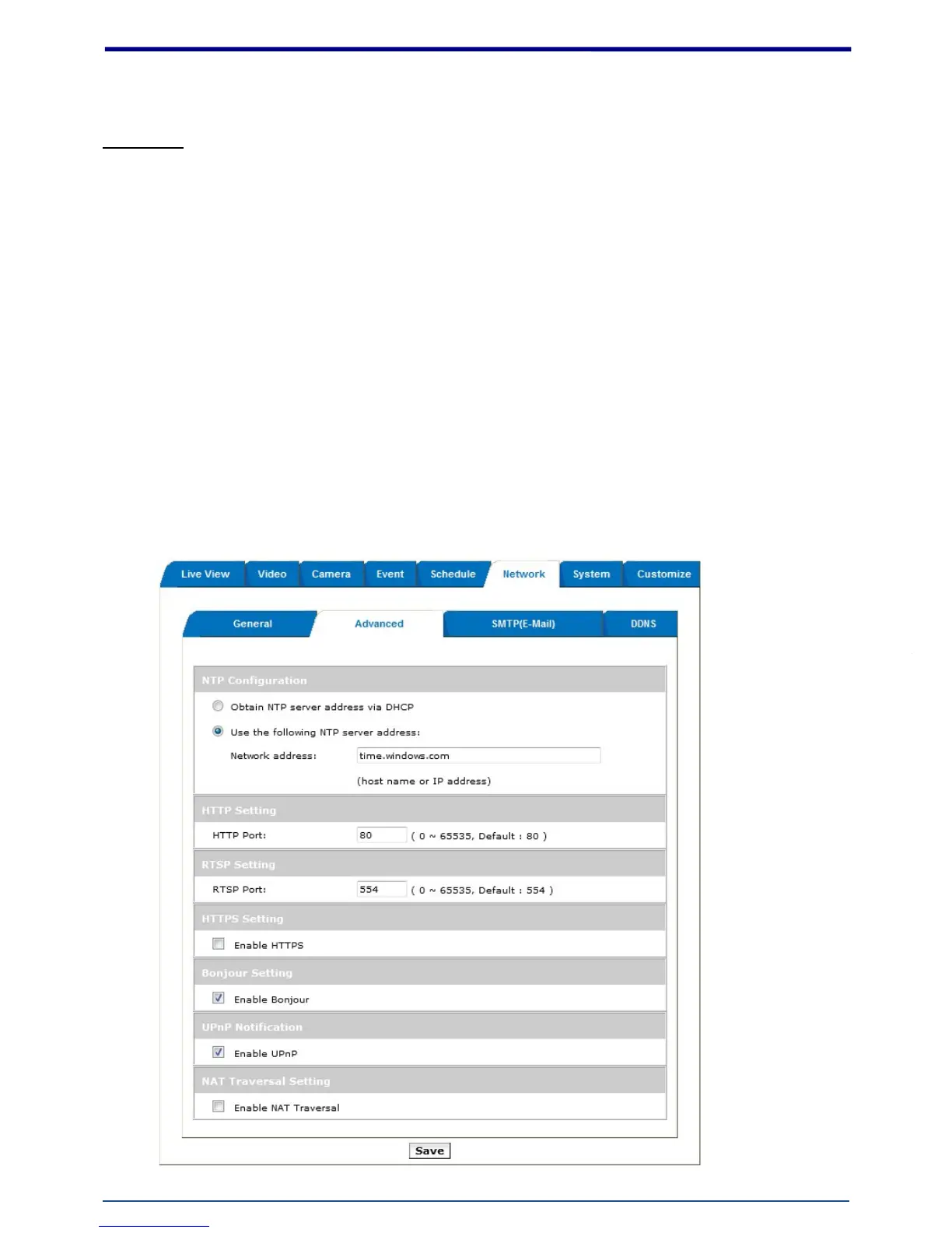 RTSP: set the RTSP (Video) port for video data transmission.