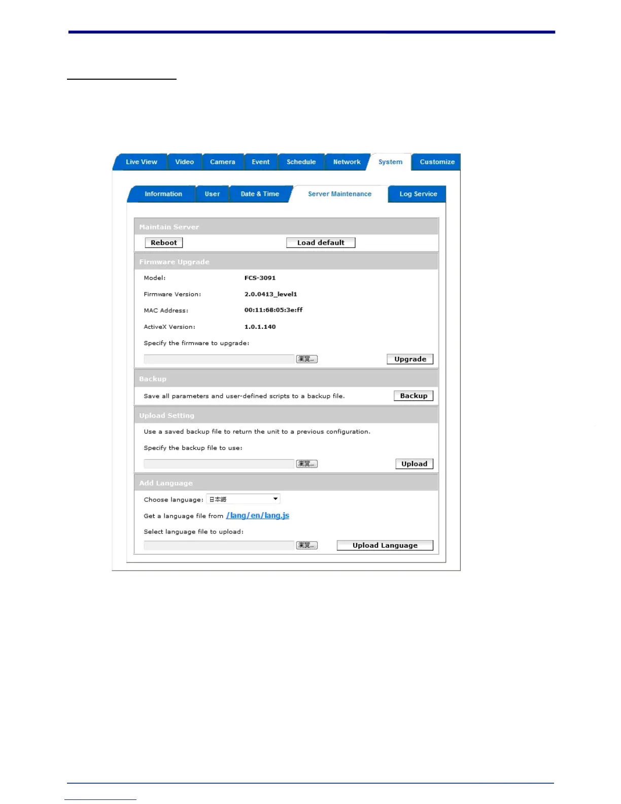 This page provides tool for system maintenance; Reboot and Load default settings, as well as