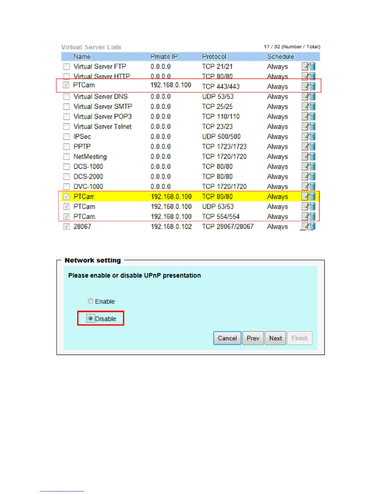 2.Go to camera Network page. Disable UPnP port forwarding function.