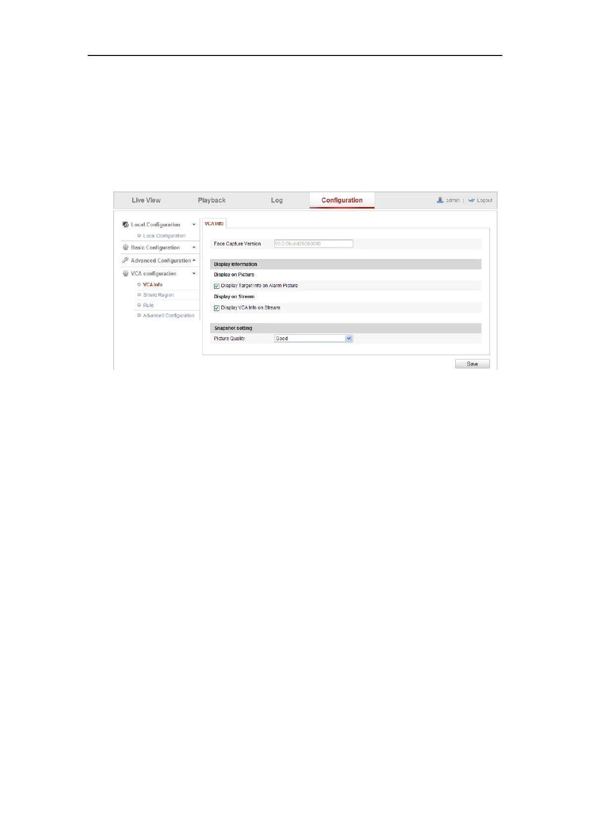 Snapshot Setting: Select the picture quality for the captured picture. Good, better, and