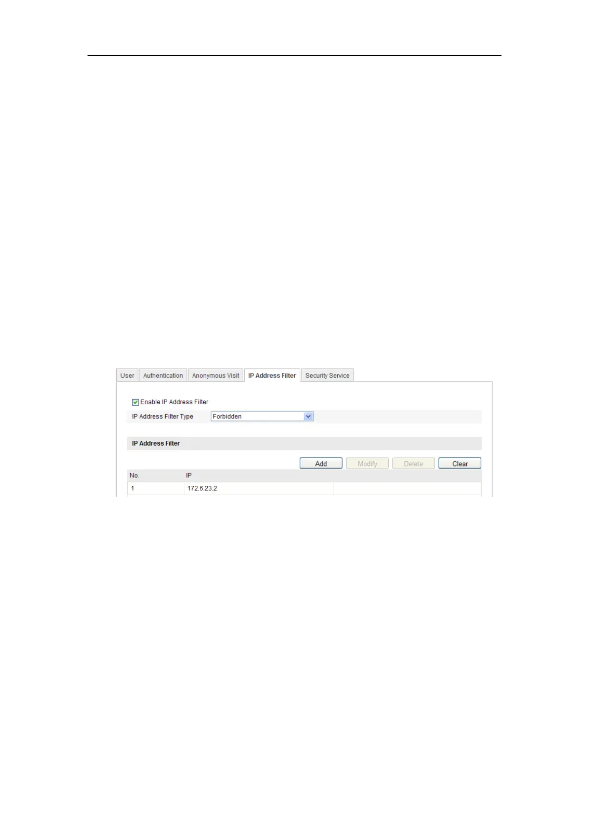 3. Select the type of IP Address Filter in the drop-down list, Forbidden and Allowed