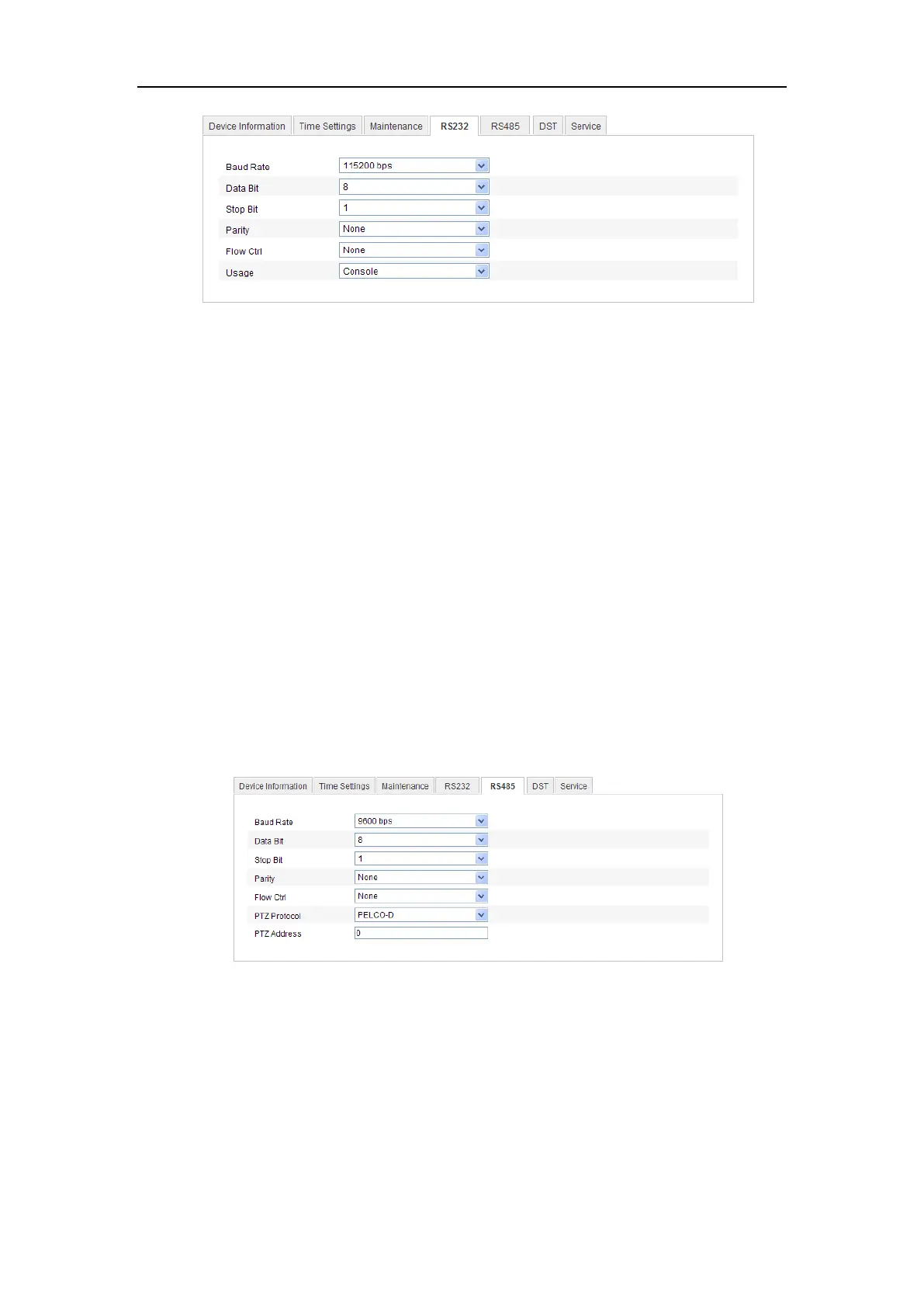 The RS-485 serial port is used to control the PTZ of the camera. The configuring of