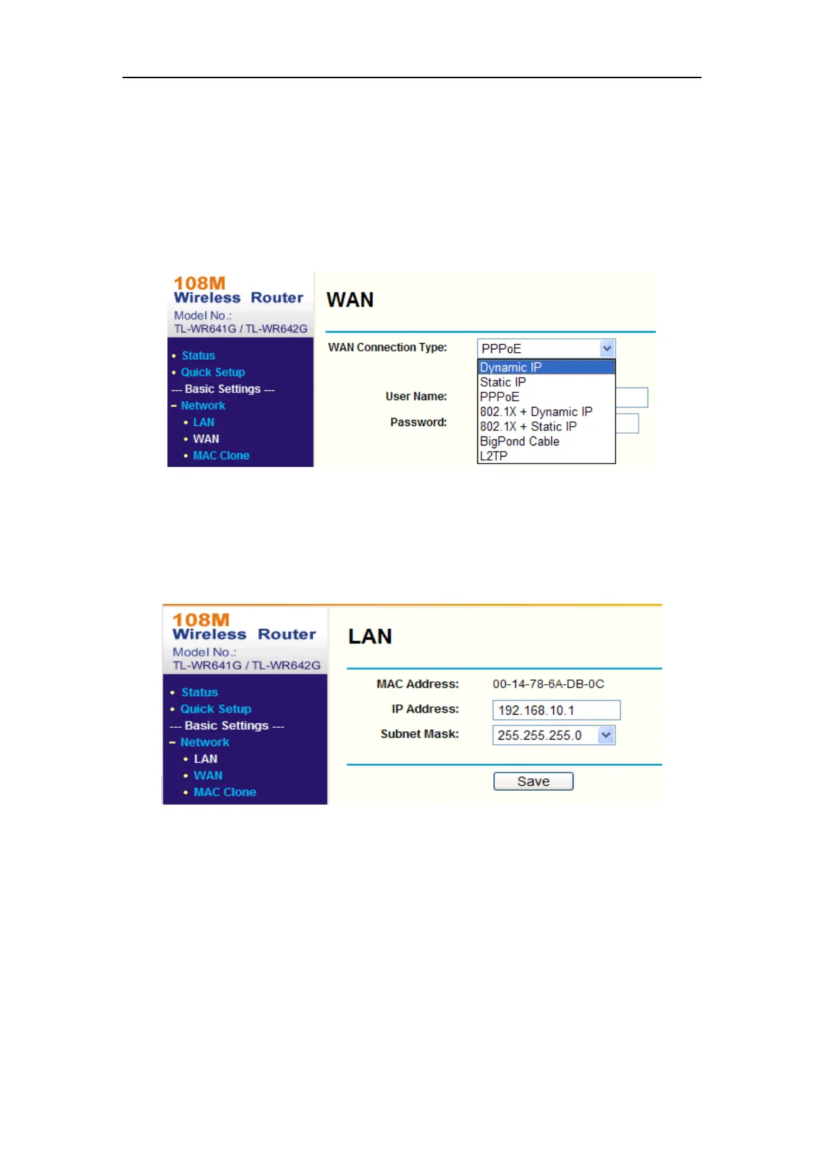 The following settings are for TP-LINK router (TL-WR641G). The settings vary