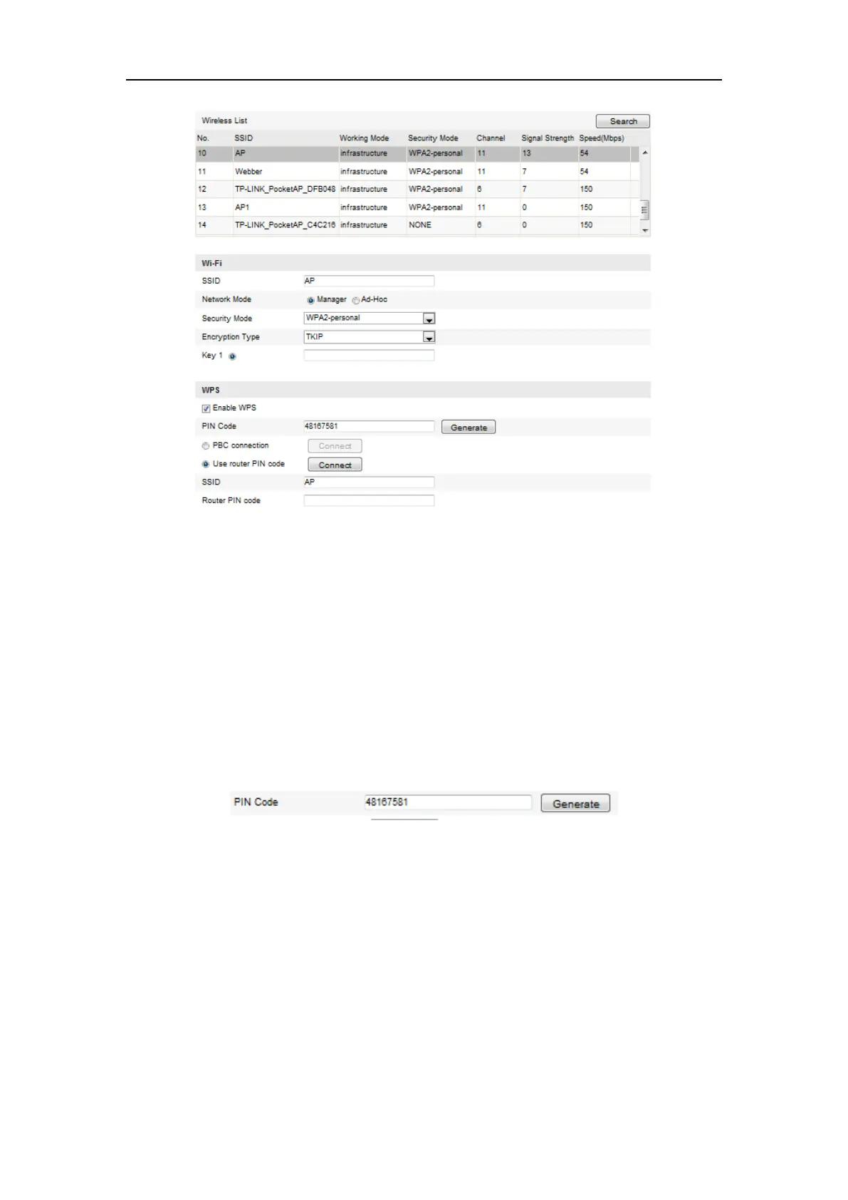 Figure 4-11 Wi-Fi Settings ā WPS PIN Mode