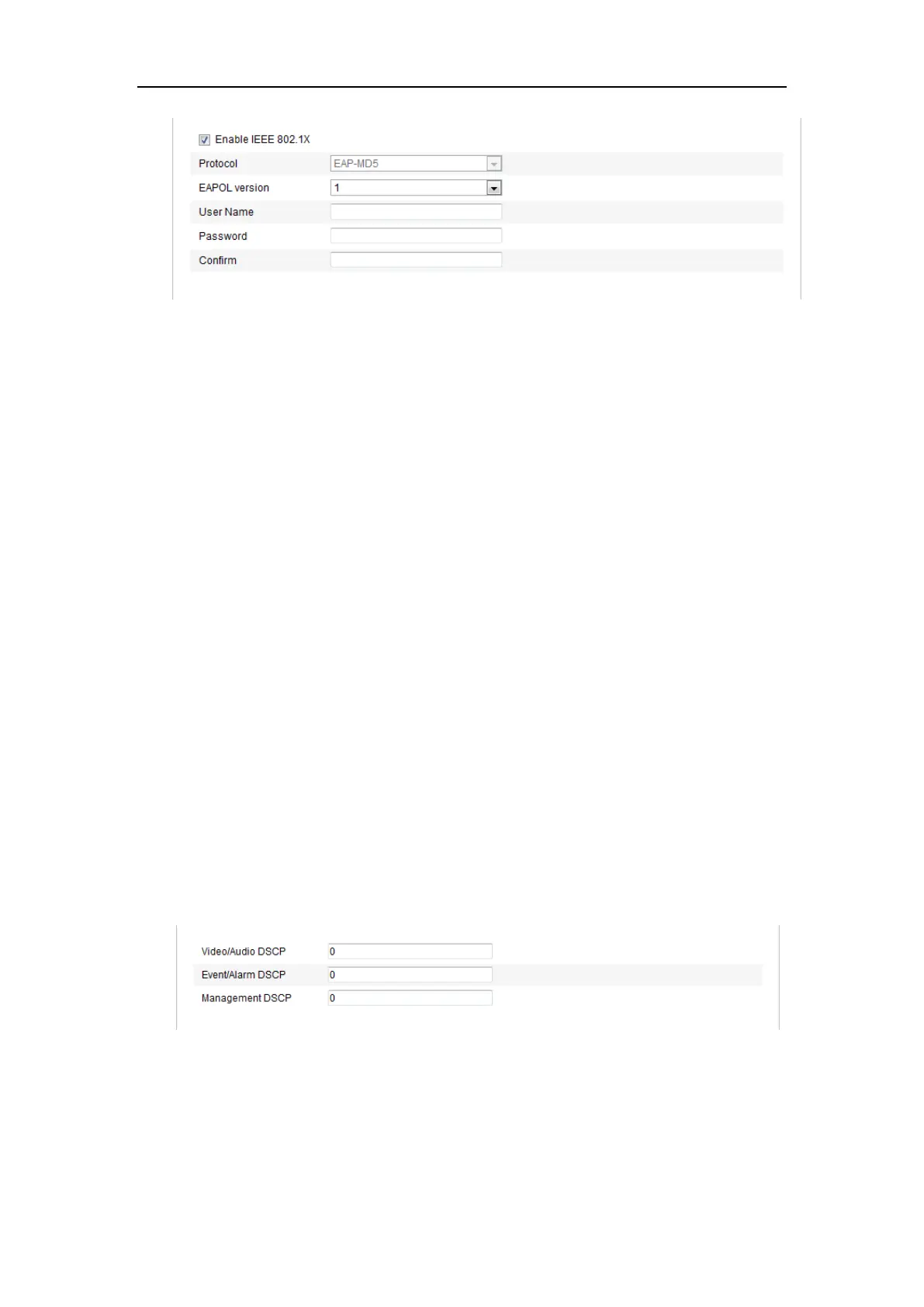 2. Configure the QoS settings, including video / audio DSCP, event / alarm DSCP
