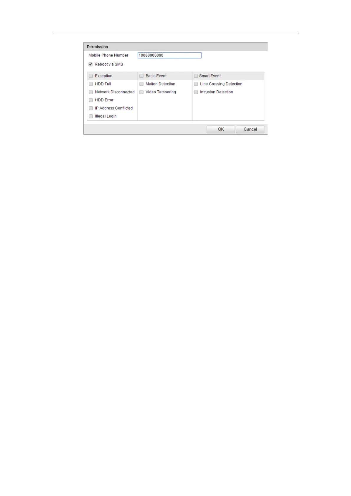 Reboot via SMS, select the alarm for SMS push, and click OK.
