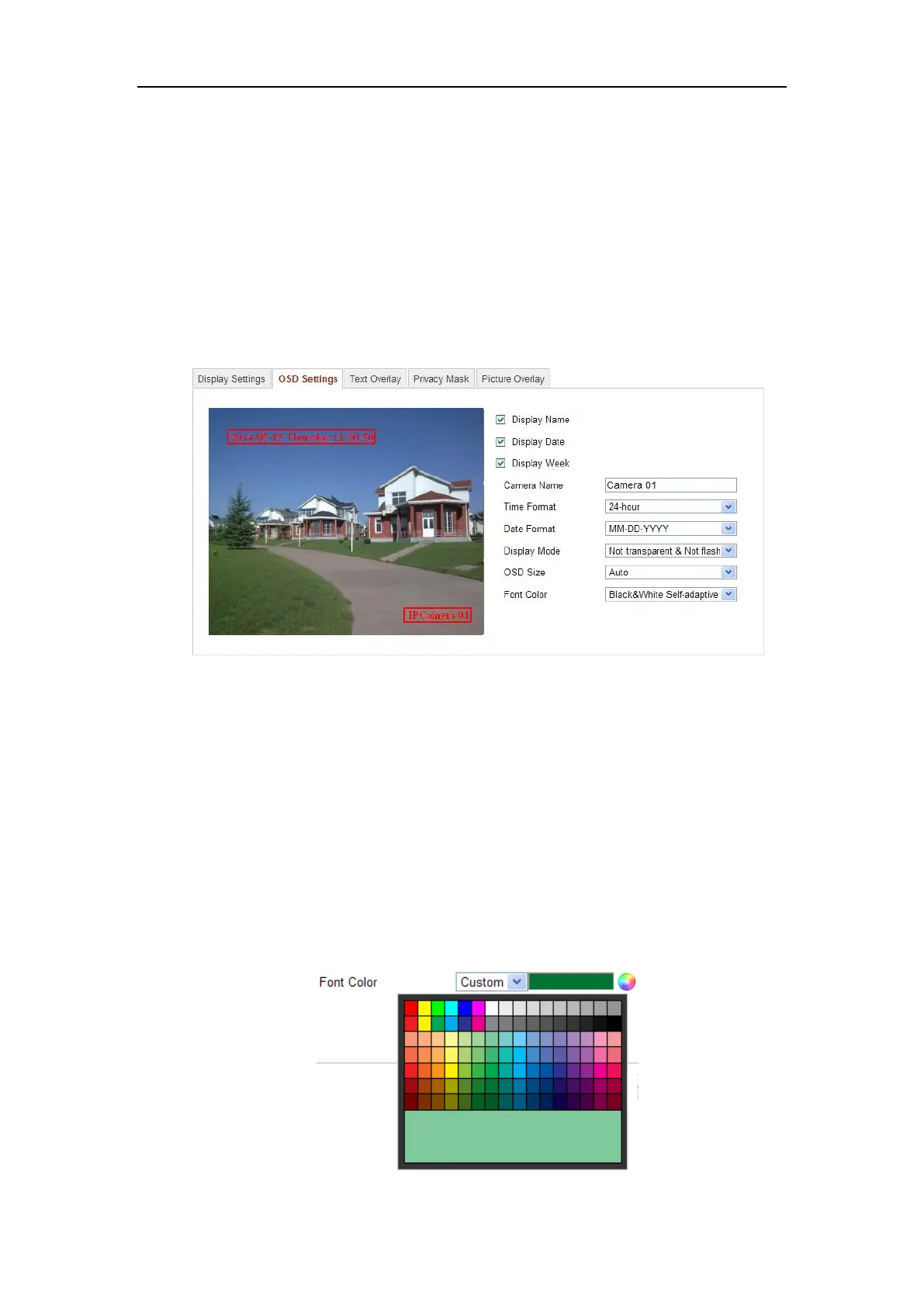 5. Define the font color of the OSD by clicking the drop-down, and black & white