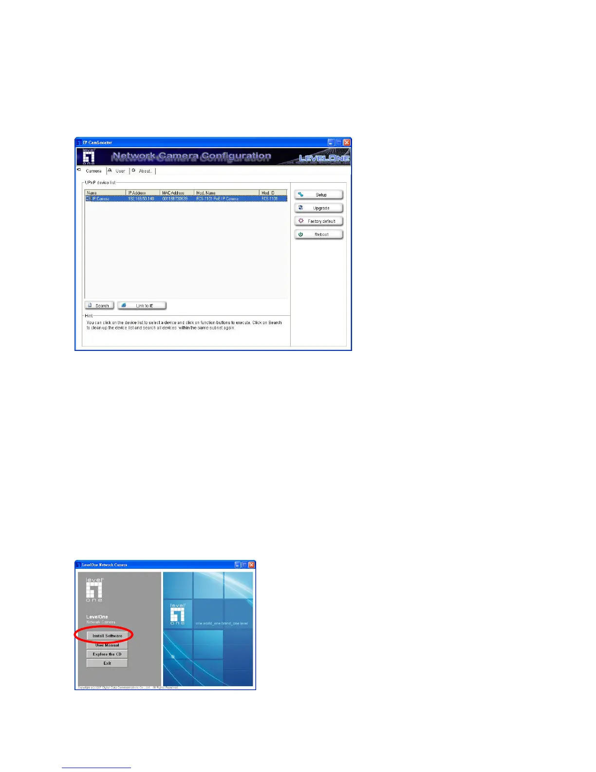 Upon IP CamLocator’s start up, this program searches for LevelOne’s products on the same