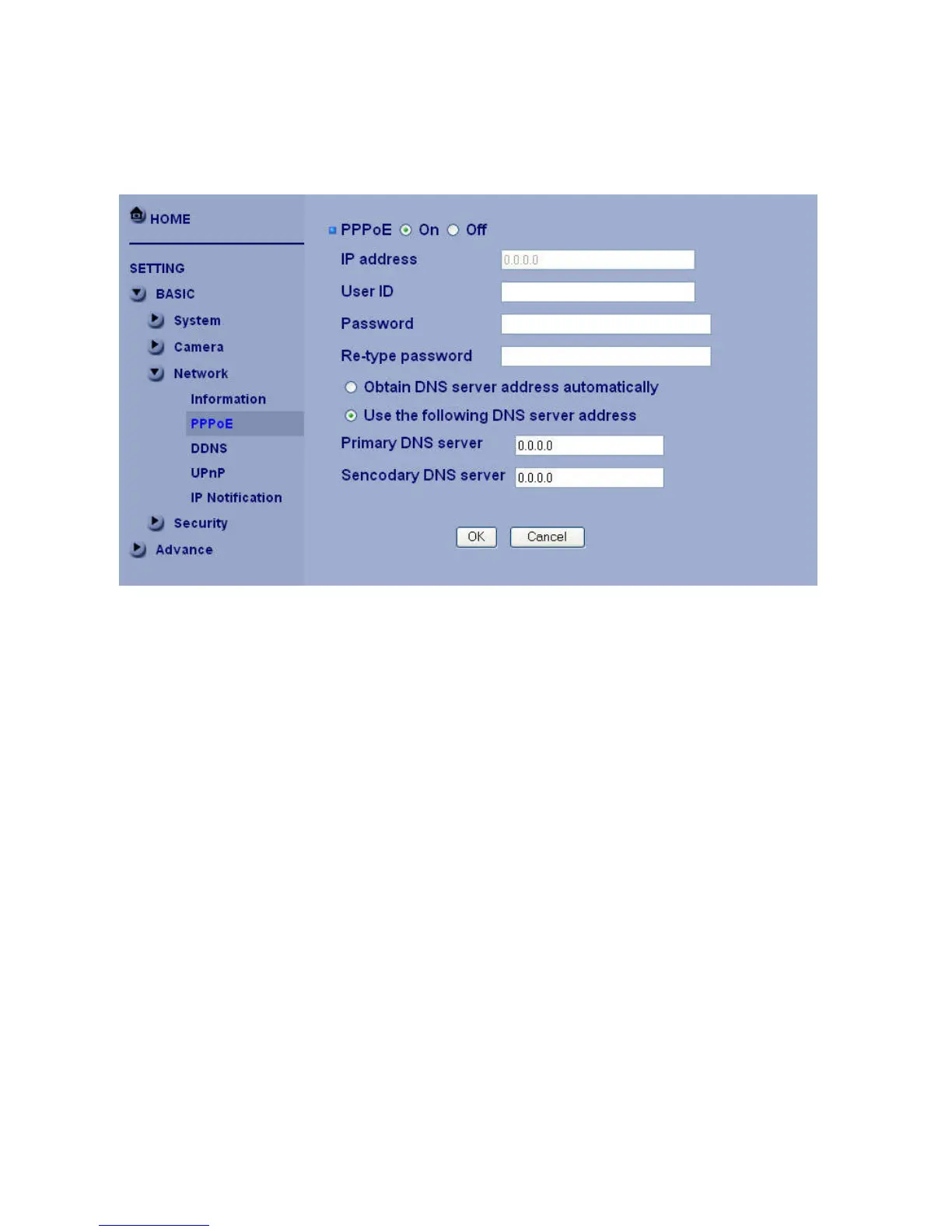 User ID:Enter the user ID for authentication necessary for PPPoE connections. Type it up to 64 characters.