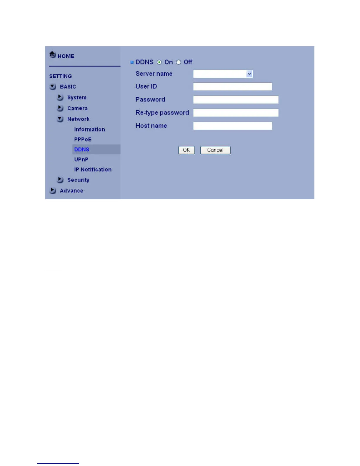 User ID:Enter the user ID for authentication necessary for DDNS connections. Type it up to 64 characters.