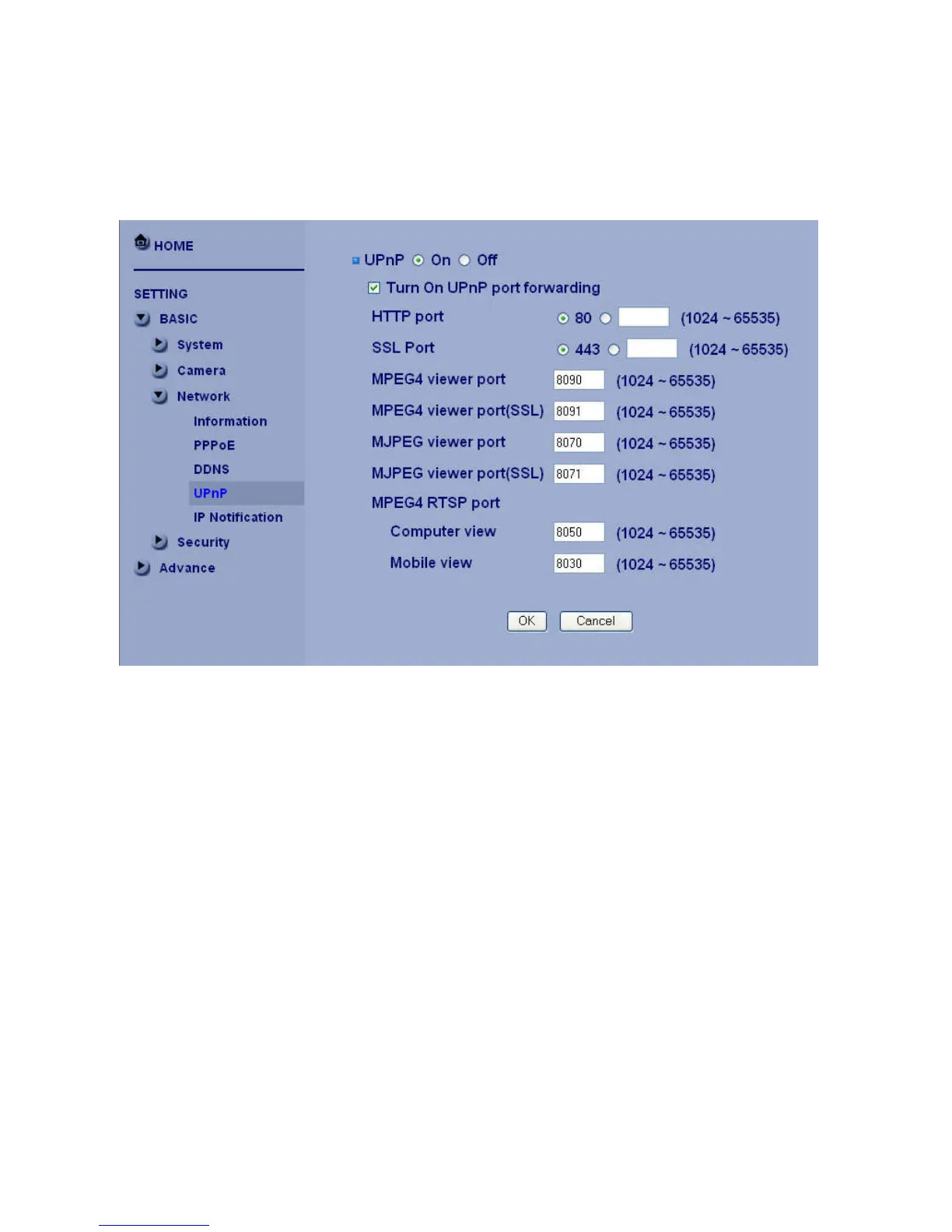 MJPEG viewer port:Enter the MJPEG viewer port number and default MJPEG viewer port is 8070.