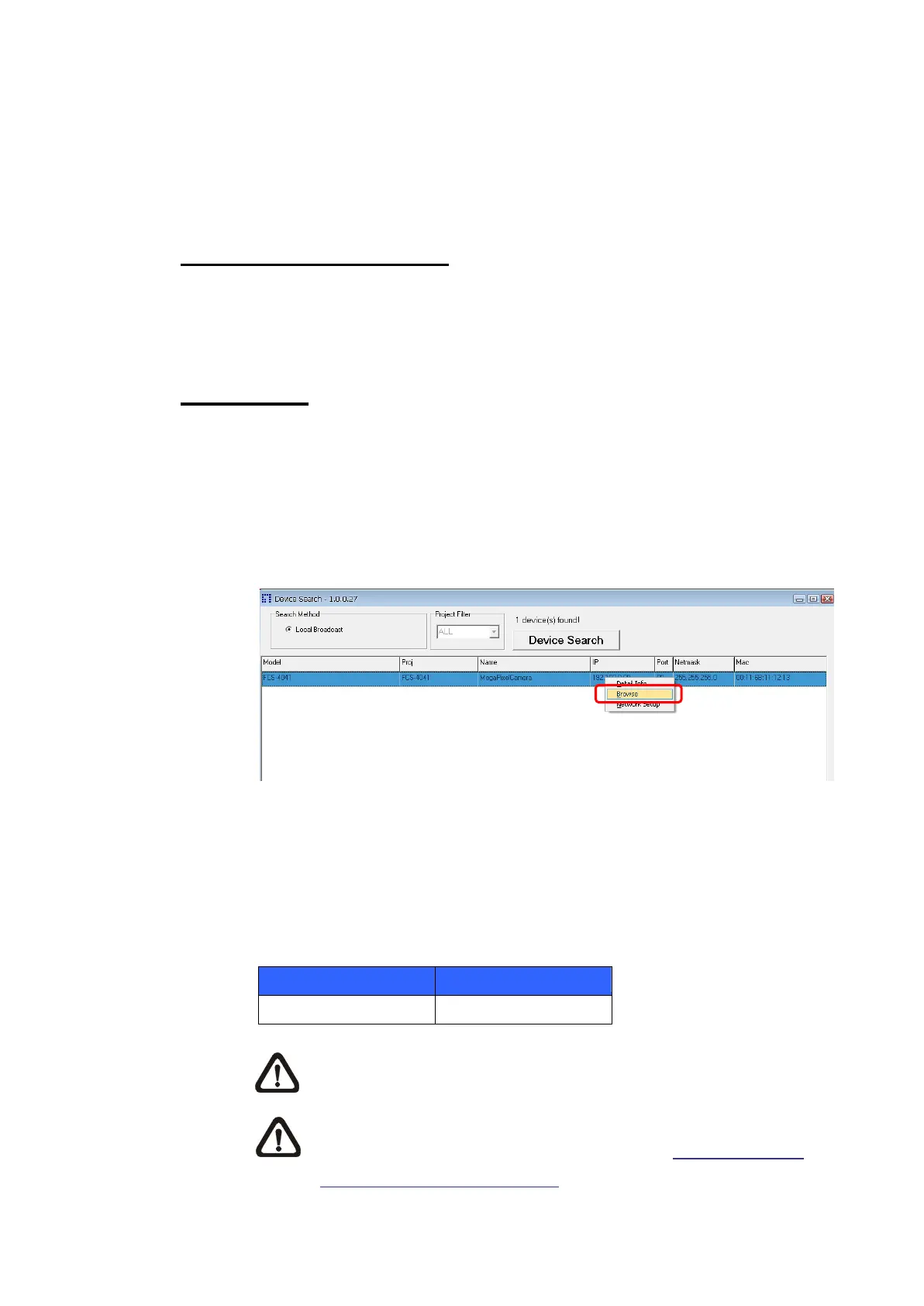 camera through the installer program: DeviceSearch.exe, which can be found in