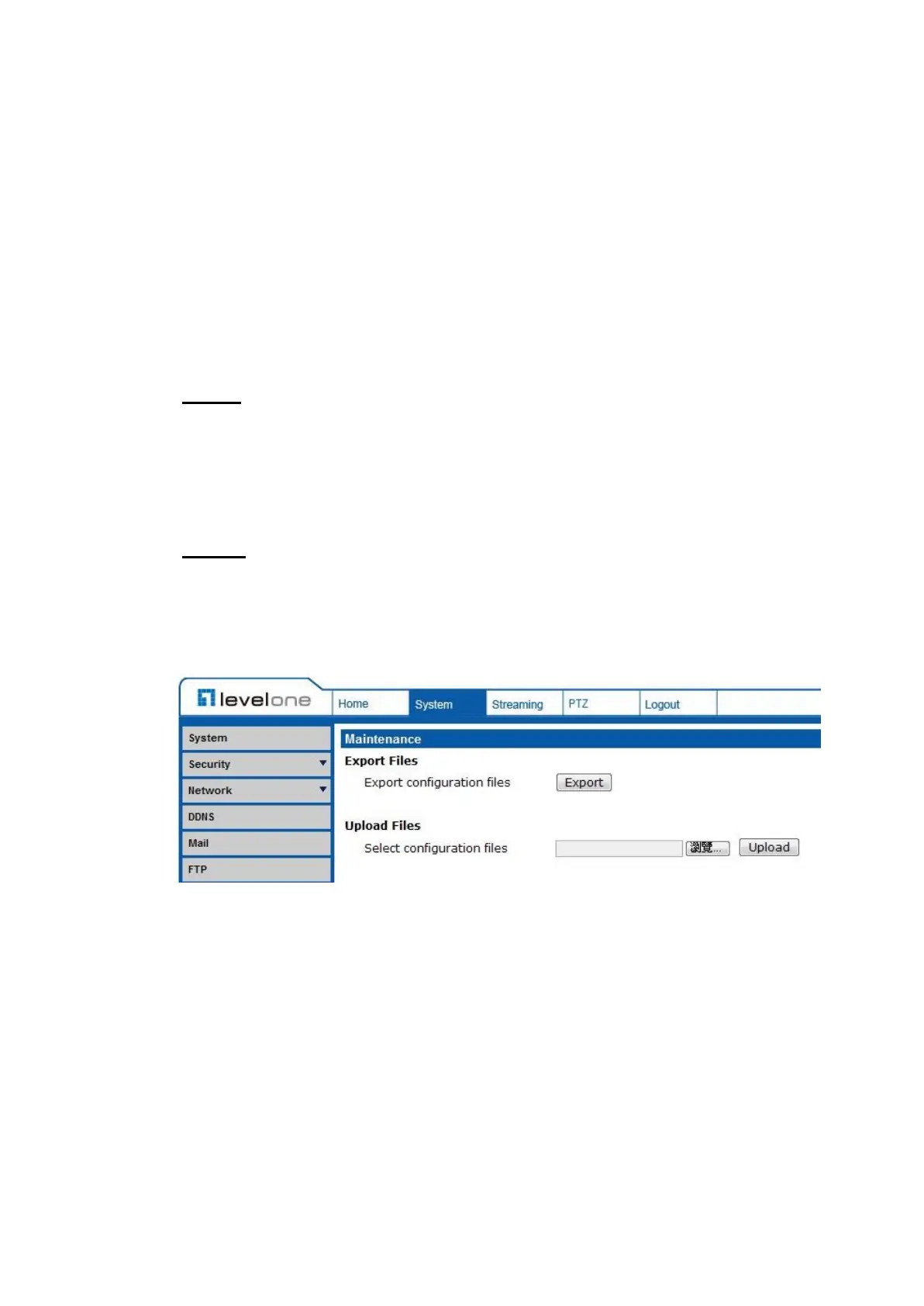 Users can save the system settings by exporting the configuration file (.bin) to a