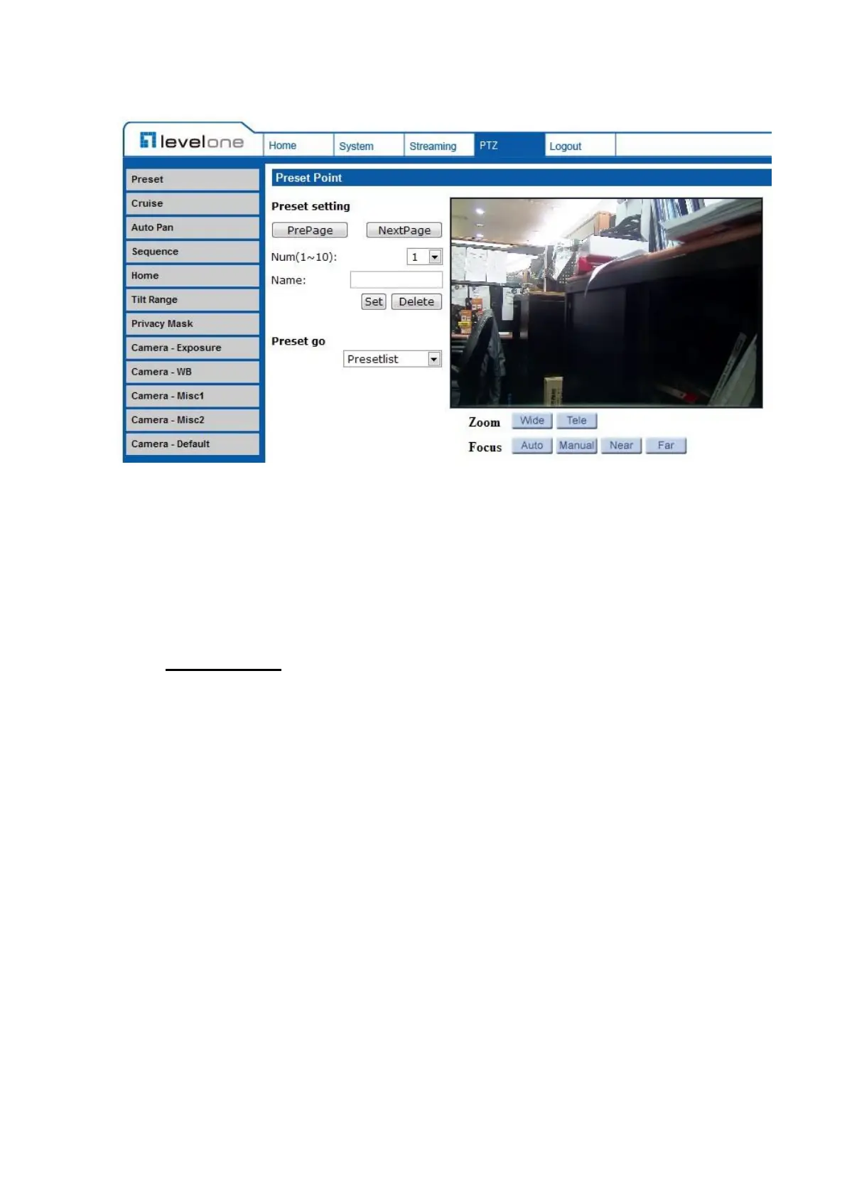 desired view (PTZ controls) as the start point of a Cruise Path. Click on the