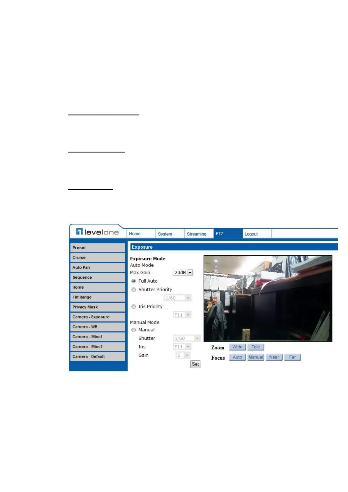 The Exposure Setting can be found under this path: PTZ> Camera- Exposure.