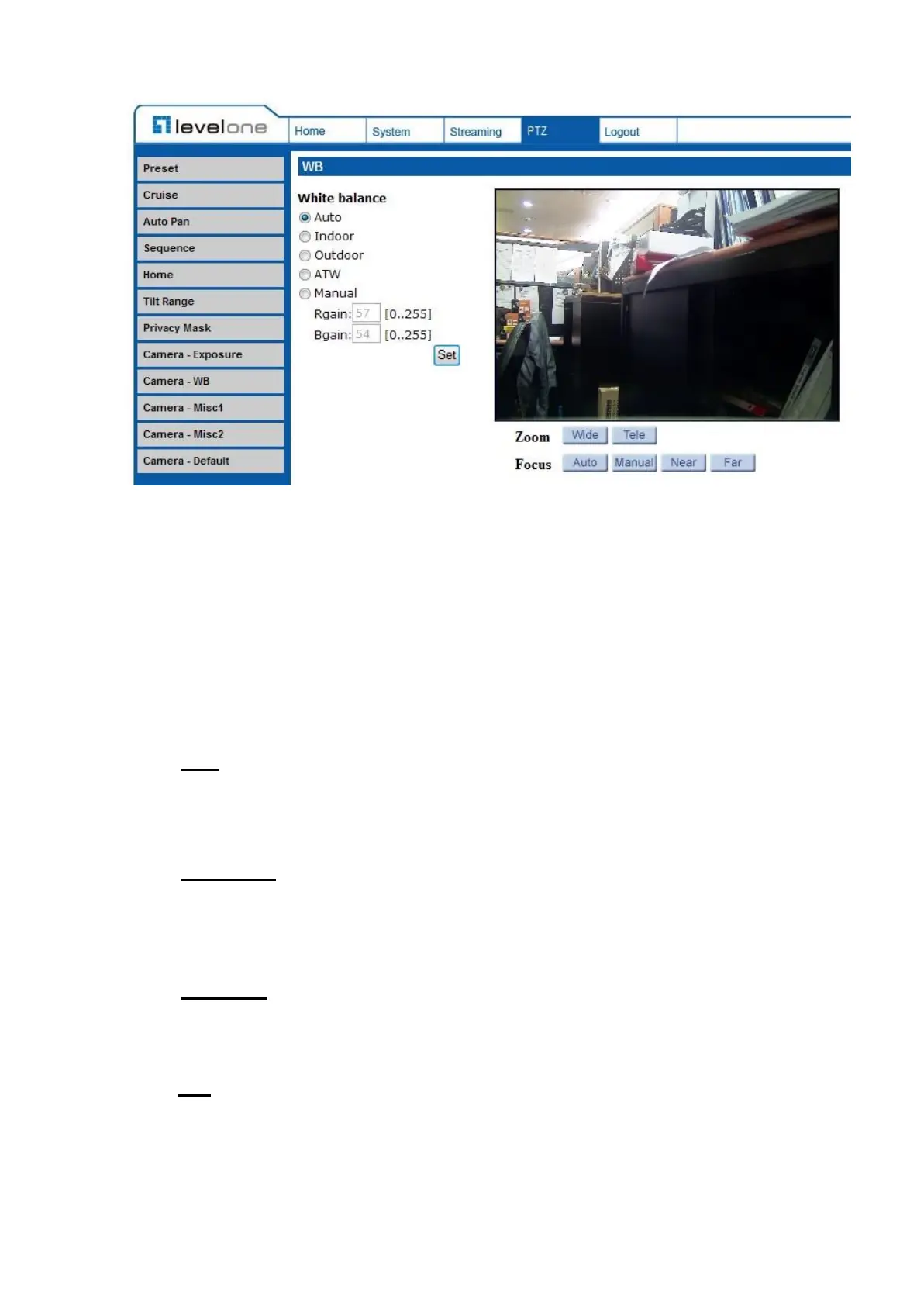 camera parameters including Backlight Compensation (BLC), Sharpness,