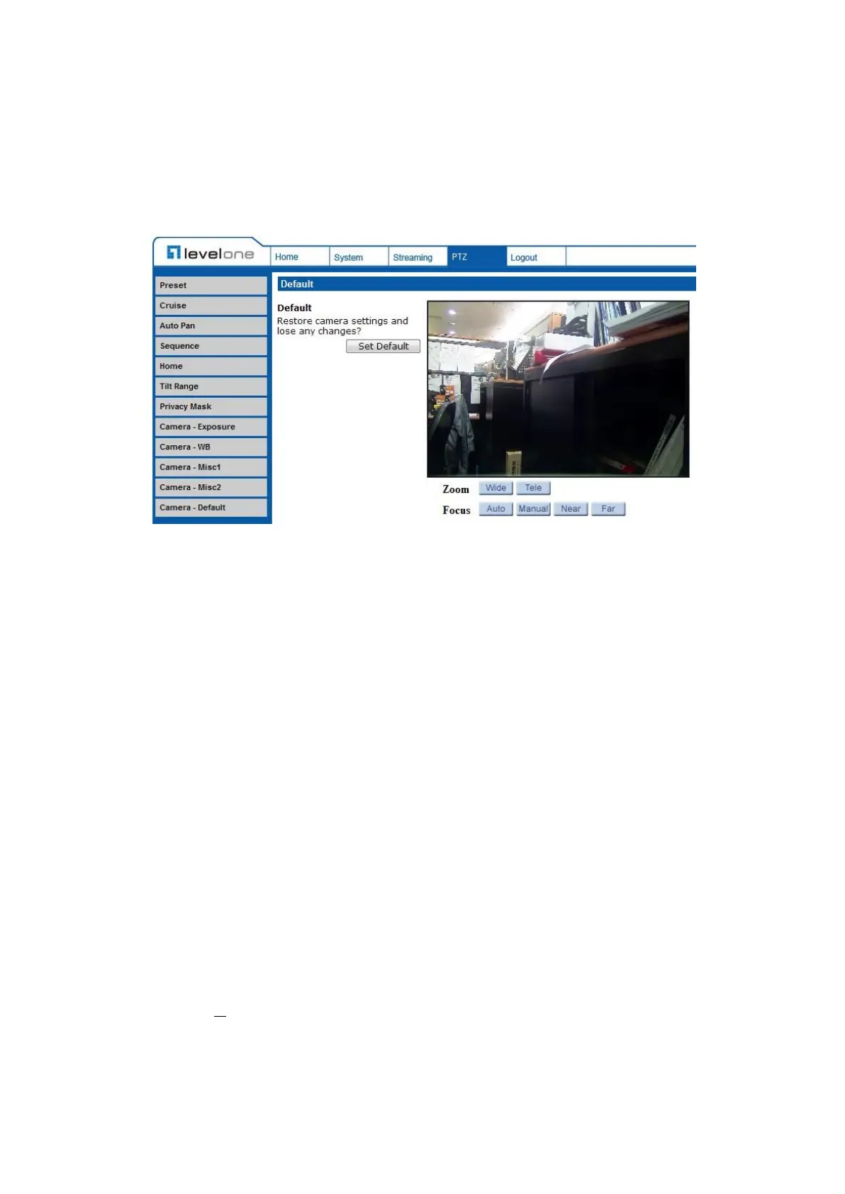 The Default Setting can be found under this path: PTZ> Camera- Default.