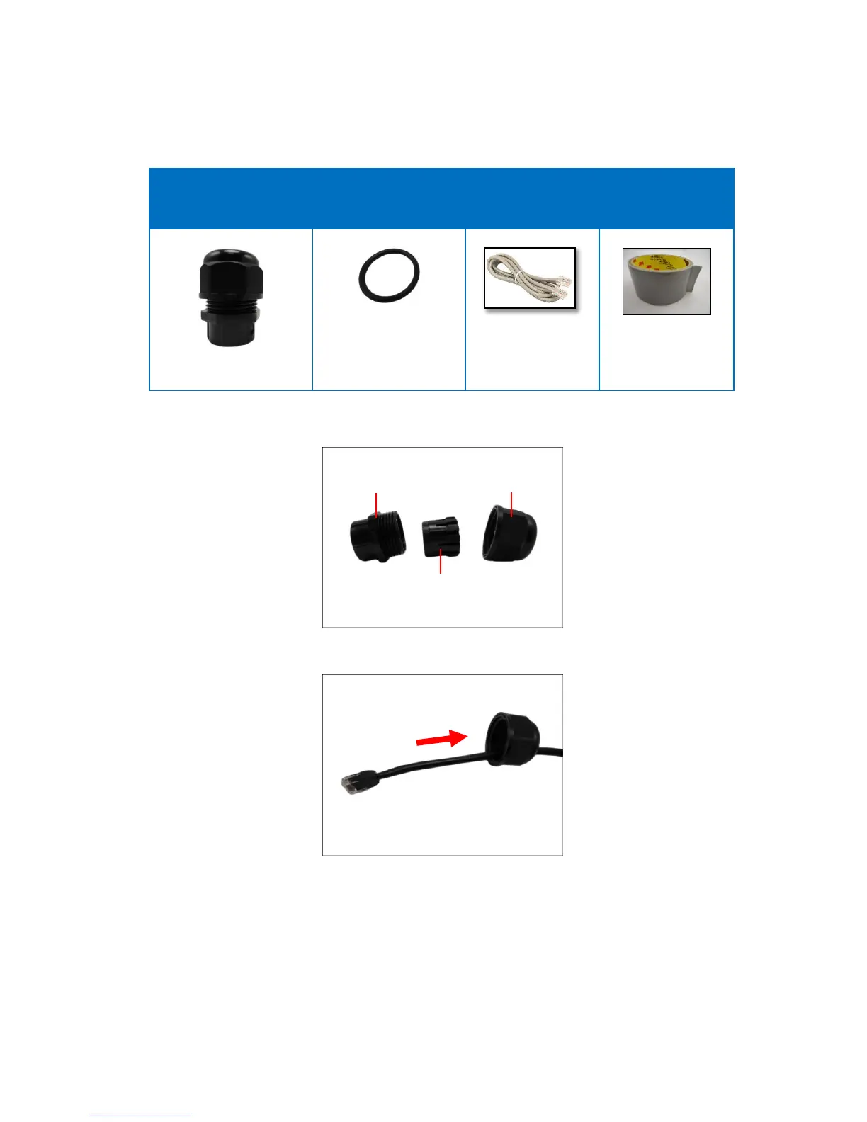 3. Insert the clamping nut through the Ethernet cable.