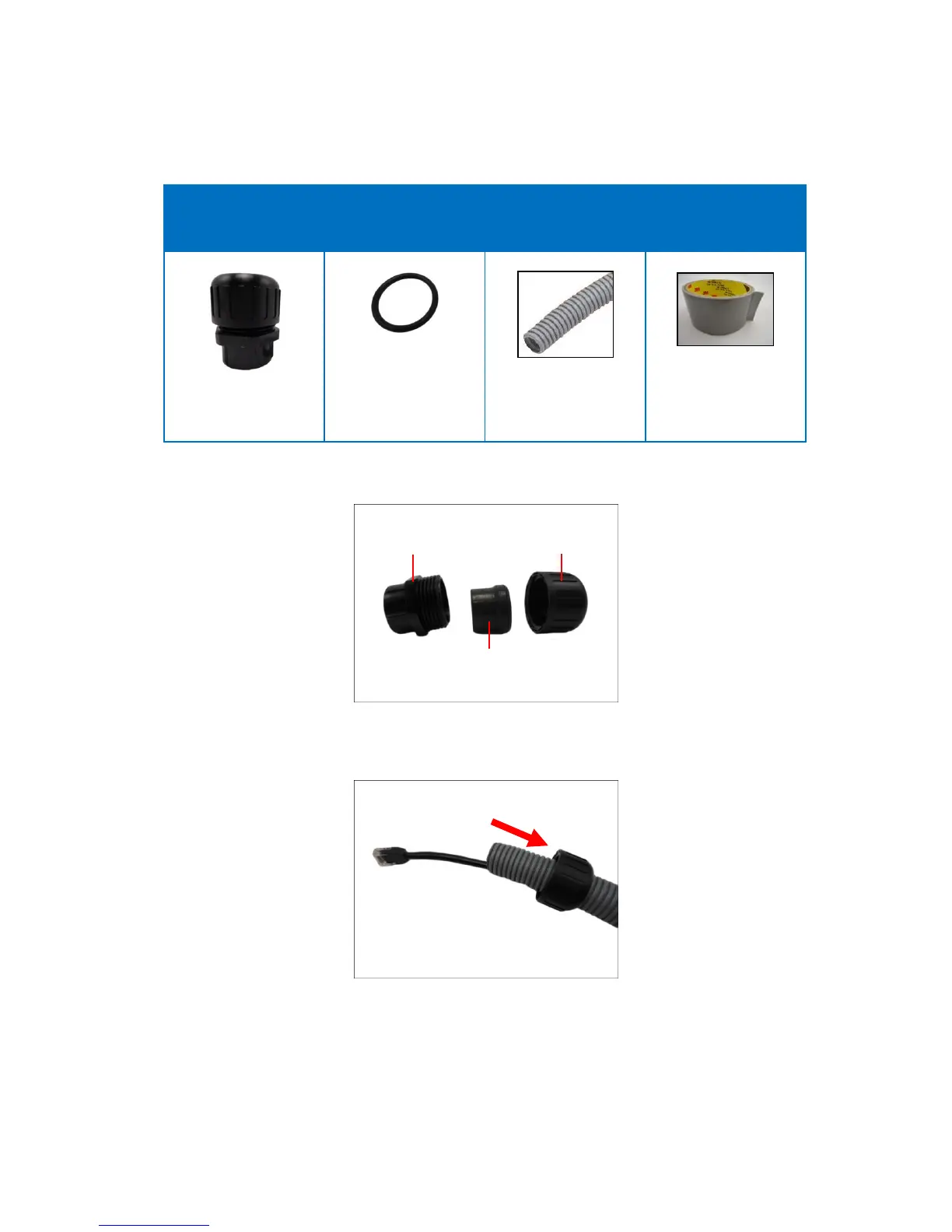 3. Insert the Ethernet cable through the flexible conduit. Then insert the clamping nut through