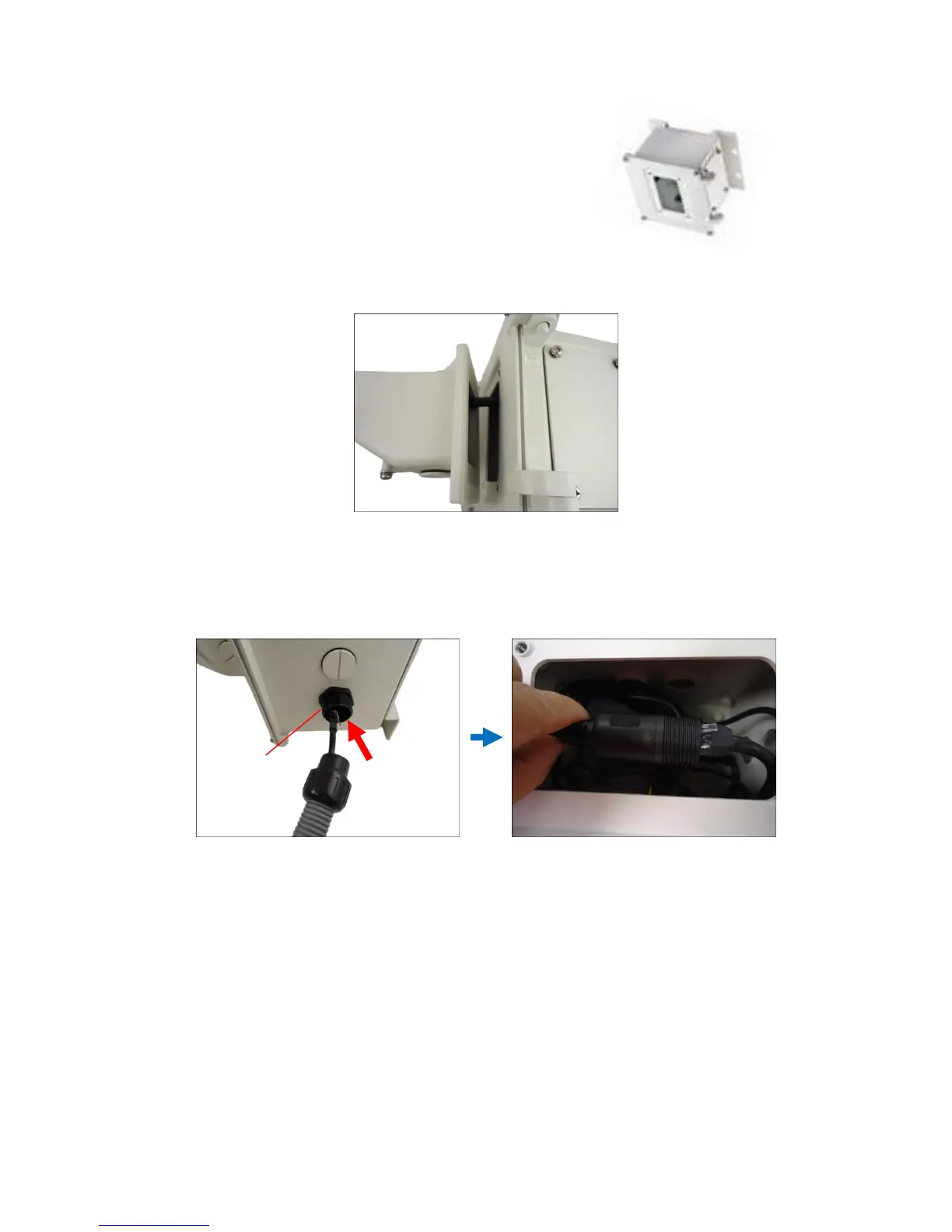 2. From the network/power source side, insert the cables, such as the Ethernet cable, through