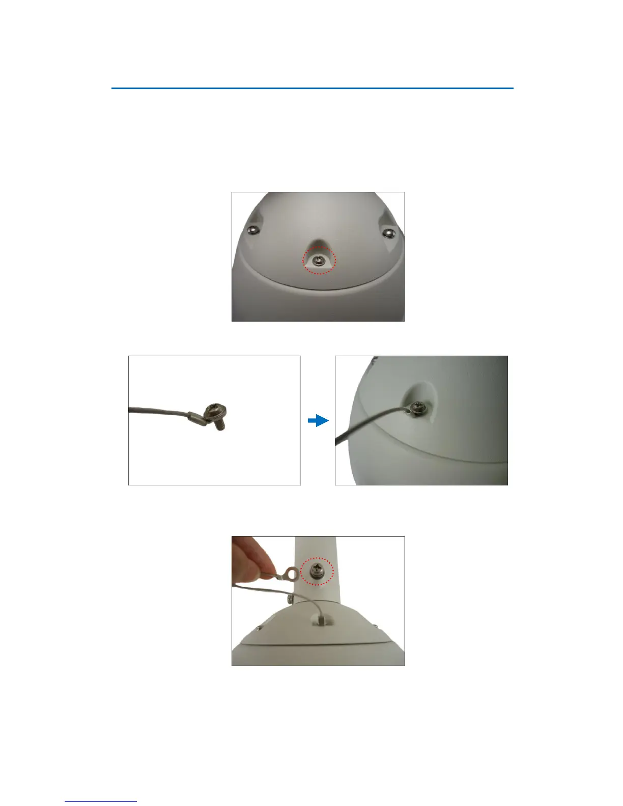 2. Insert the screw through the smaller end of the safety wire strap and attach it to the camera.
